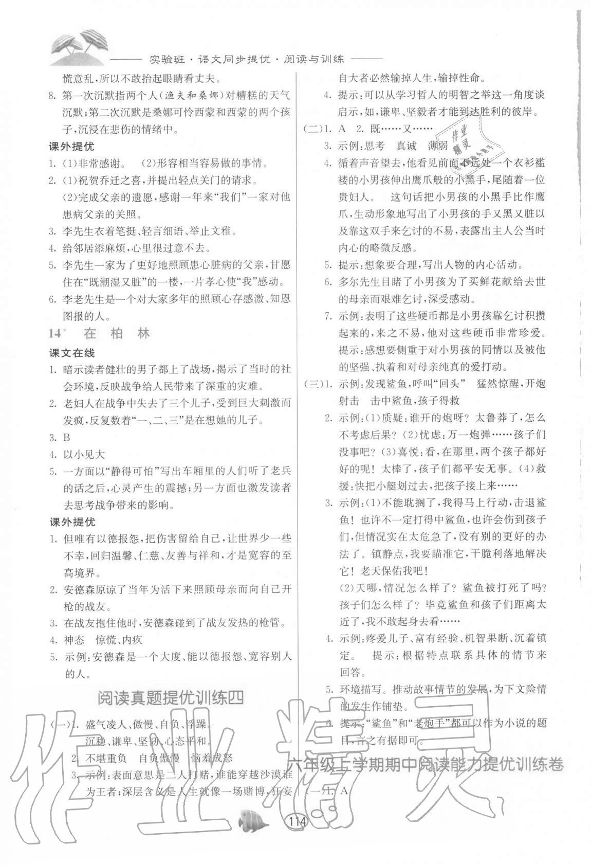 2020年实验班语文同步提优阅读与训练六年级上册人教版