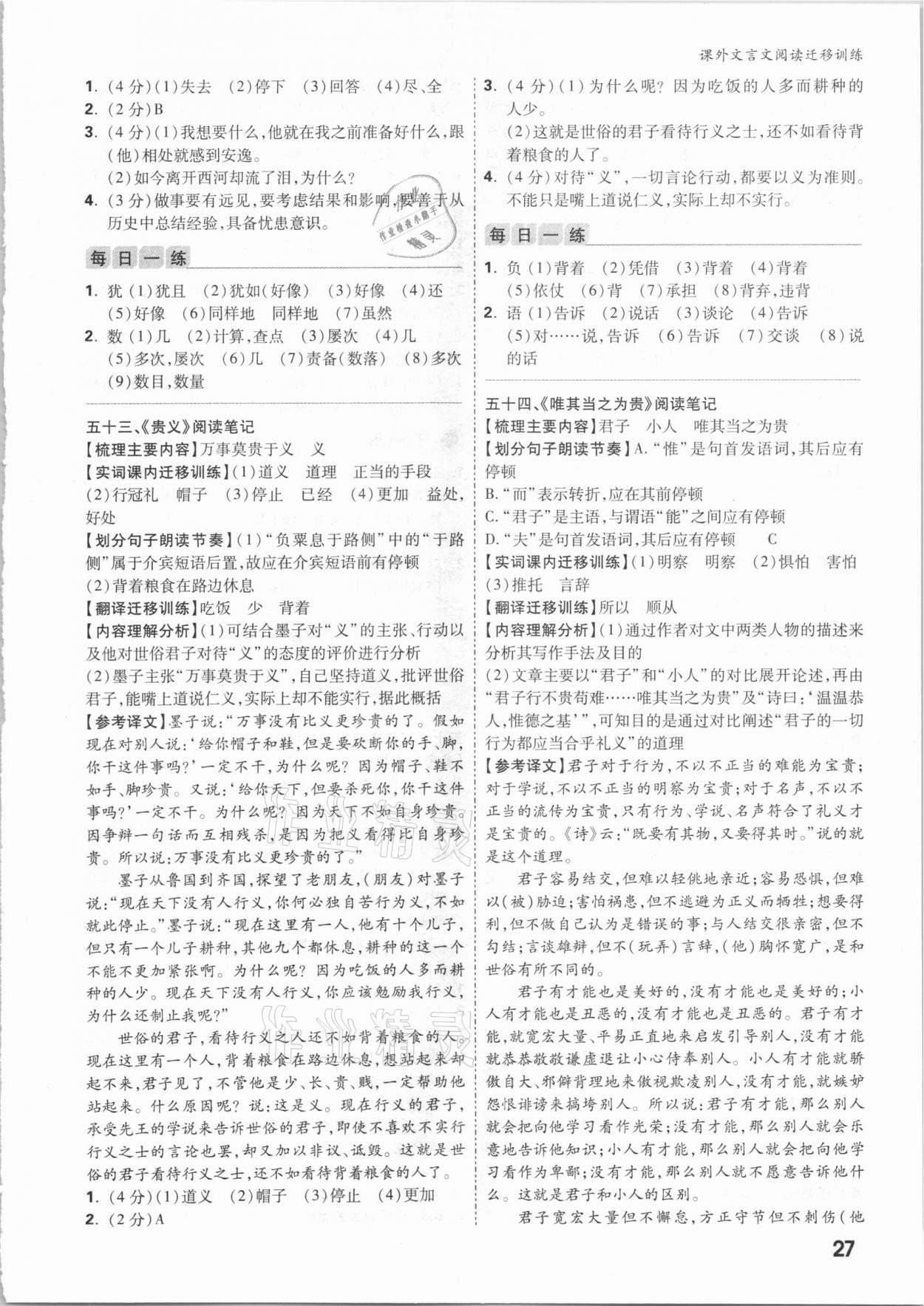 注:目前有些书本章节名称可能整理的还不是很完善,但都是按照顺序排列的,请同学们按照顺序仔细查找。练习册 2021年万唯中考课外文言文阅读迁移训练语文 答案主要是用来给同学们做完题方便对答案用的,请勿直接抄袭。
