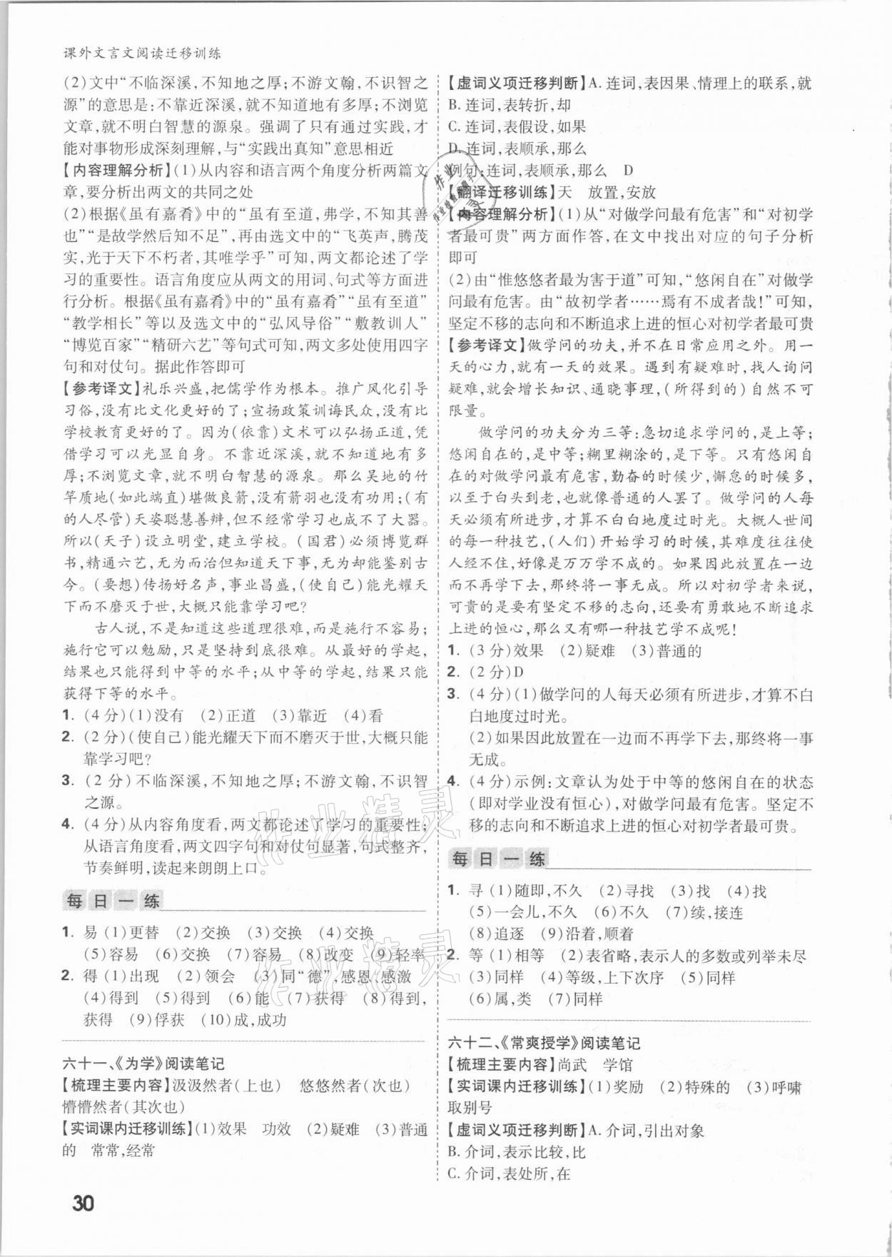 注:目前有些书本章节名称可能整理的还不是很完善,但都是按照顺序排列的,请同学们按照顺序仔细查找。练习册 2021年万唯中考课外文言文阅读迁移训练语文 答案主要是用来给同学们做完题方便对答案用的,请勿直接抄袭。
