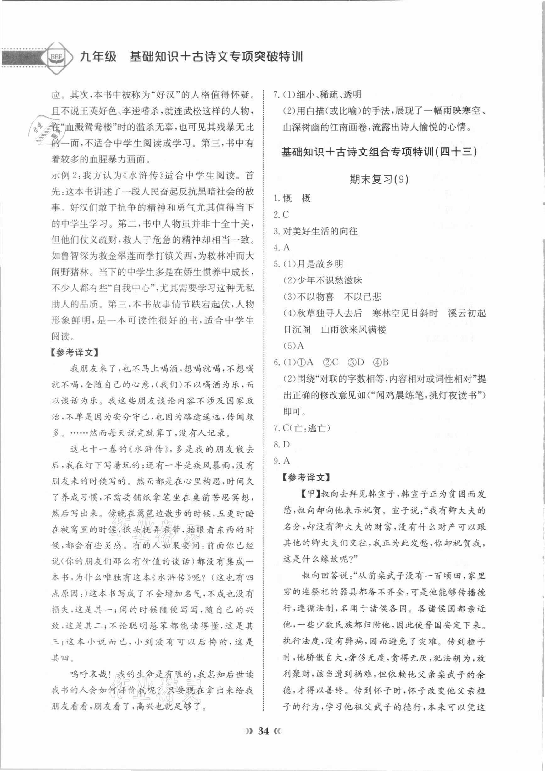 注:目前有些书本章节名称可能整理的还不是很完善,但都是按照顺序排列的,请同学们按照顺序仔细查找。练习册 2020年初中语文中考专项突破特训基础知识加古诗文 答案主要是用来给同学们做完题方便对答案用的,请勿直接抄袭。