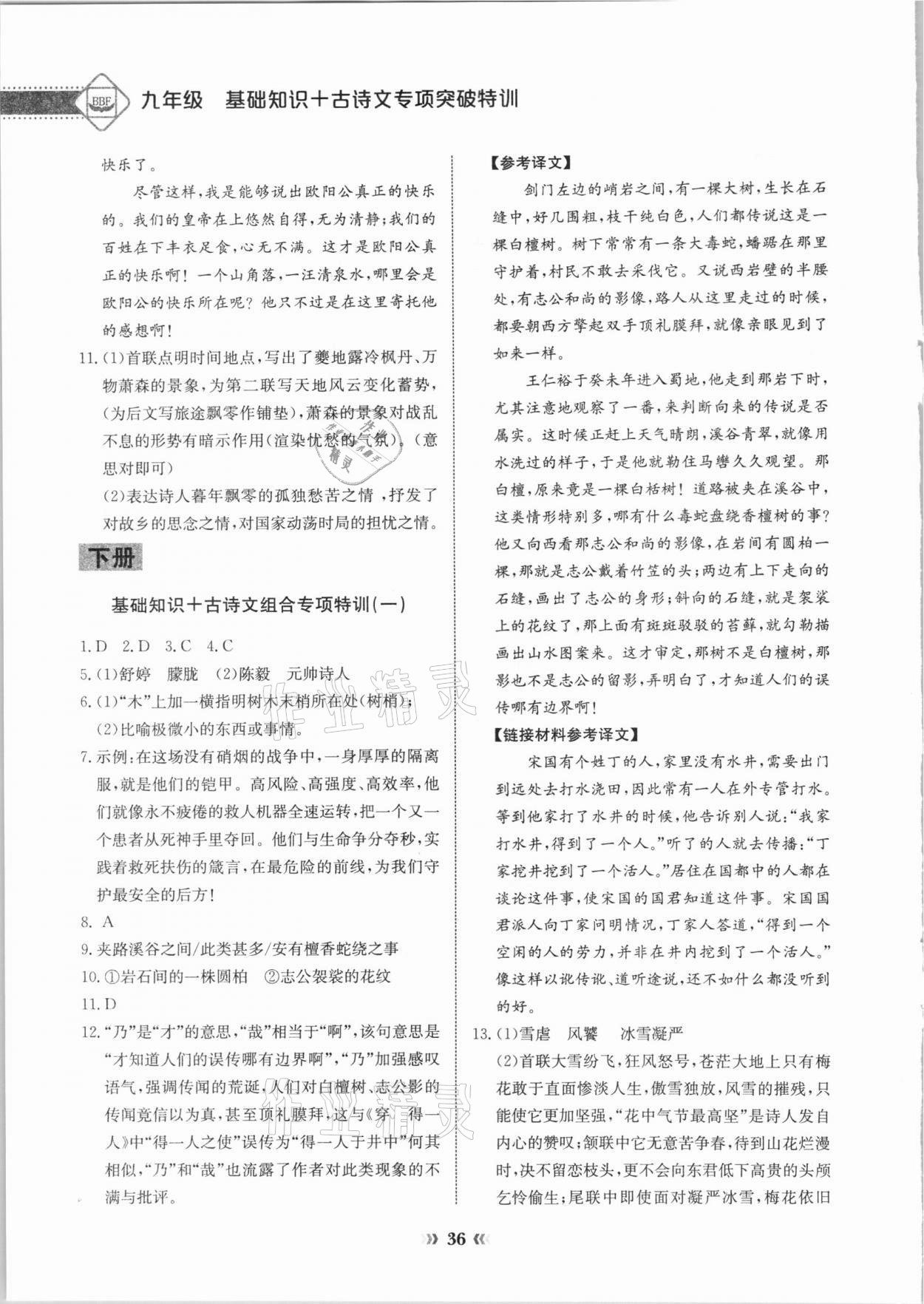 注:目前有些书本章节名称可能整理的还不是很完善,但都是按照顺序排列的,请同学们按照顺序仔细查找。练习册 2020年初中语文中考专项突破特训基础知识加古诗文 答案主要是用来给同学们做完题方便对答案用的,请勿直接抄袭。