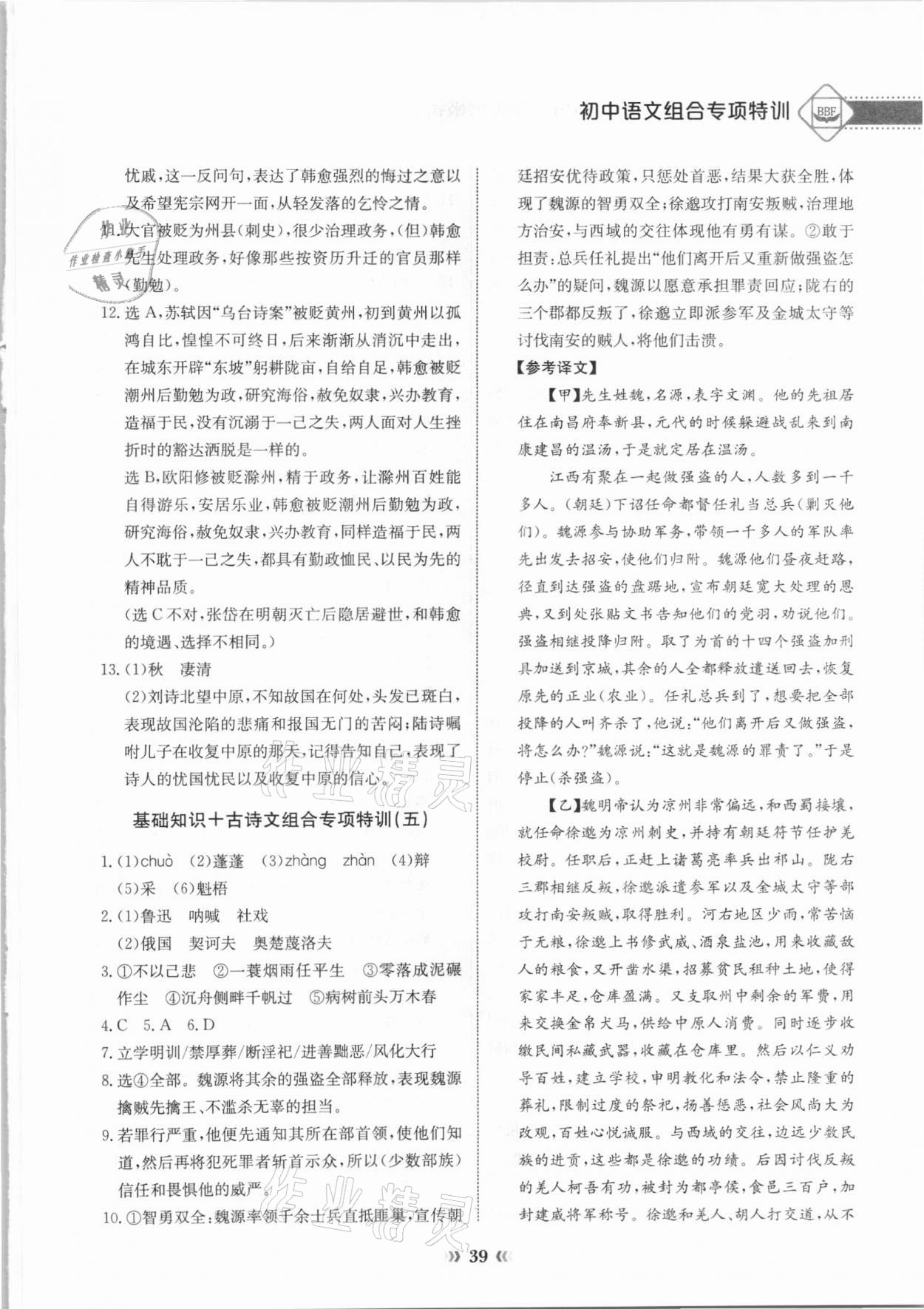 注:目前有些书本章节名称可能整理的还不是很完善,但都是按照顺序排列的,请同学们按照顺序仔细查找。练习册 2020年初中语文中考专项突破特训基础知识加古诗文 答案主要是用来给同学们做完题方便对答案用的,请勿直接抄袭。