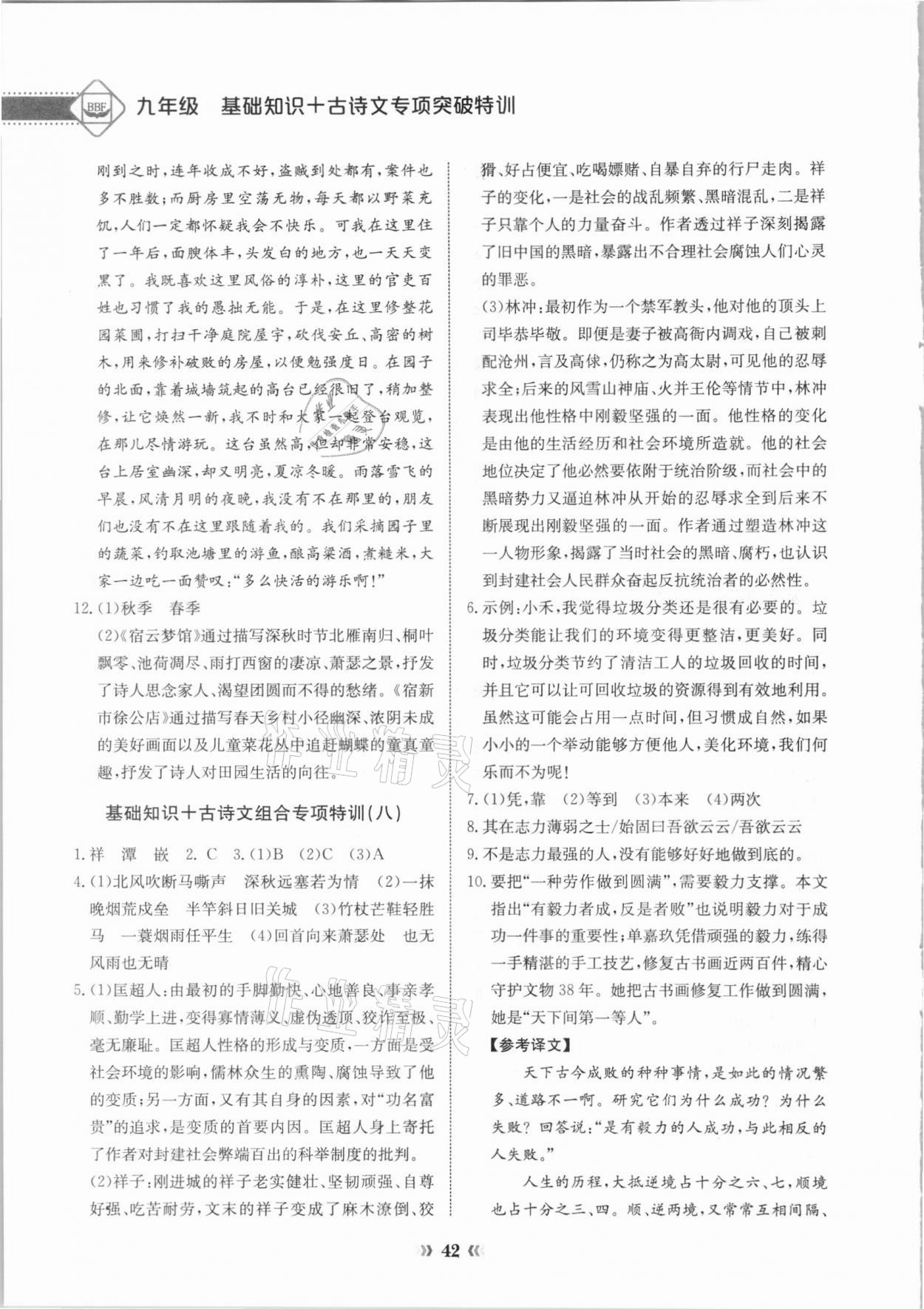 注:目前有些书本章节名称可能整理的还不是很完善,但都是按照顺序排列的,请同学们按照顺序仔细查找。练习册 2020年初中语文中考专项突破特训基础知识加古诗文 答案主要是用来给同学们做完题方便对答案用的,请勿直接抄袭。