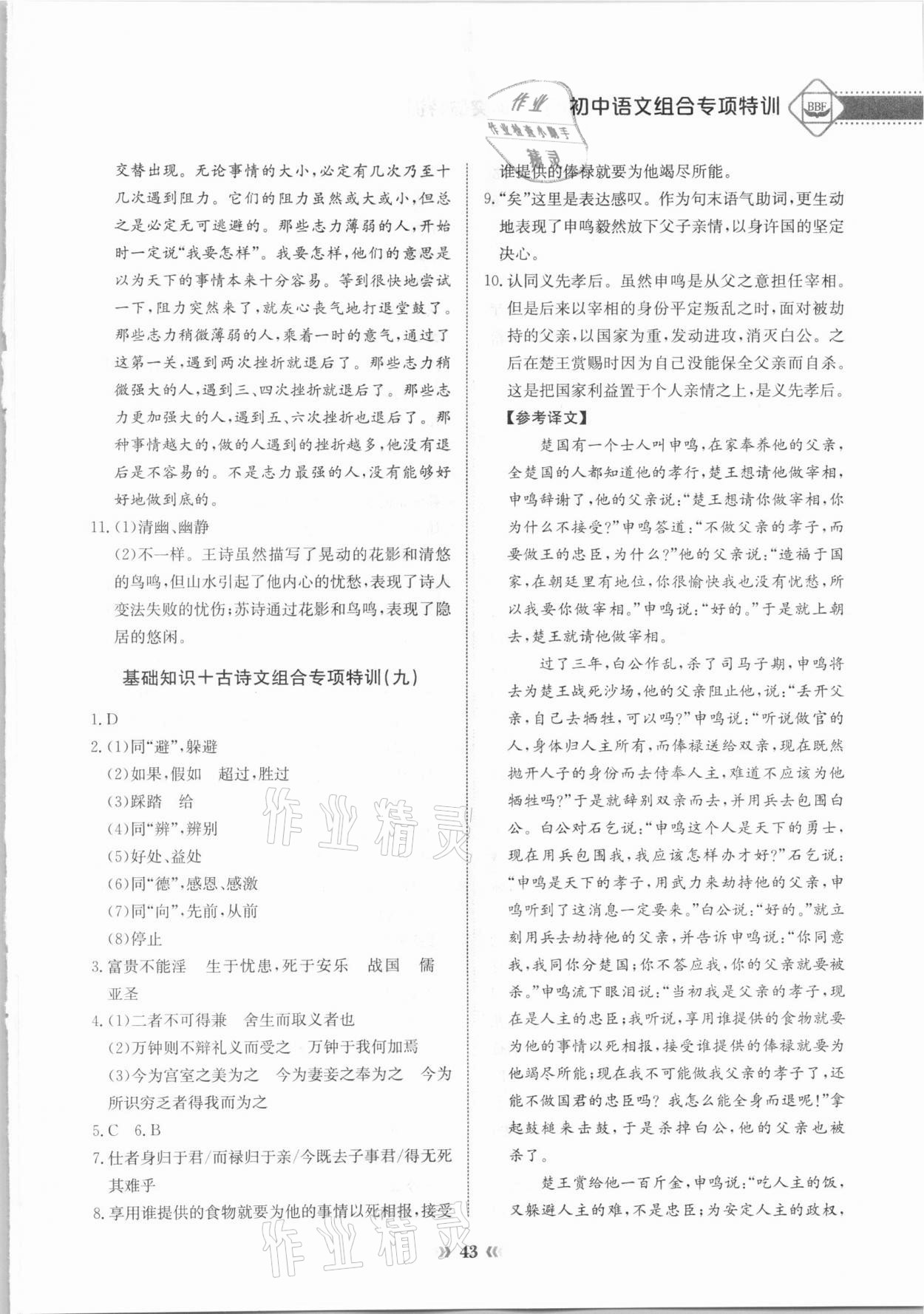 注:目前有些书本章节名称可能整理的还不是很完善,但都是按照顺序排列的,请同学们按照顺序仔细查找。练习册 2020年初中语文中考专项突破特训基础知识加古诗文 答案主要是用来给同学们做完题方便对答案用的,请勿直接抄袭。