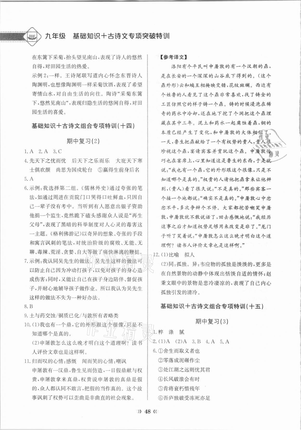 注:目前有些书本章节名称可能整理的还不是很完善,但都是按照顺序排列的,请同学们按照顺序仔细查找。练习册 2020年初中语文中考专项突破特训基础知识加古诗文 答案主要是用来给同学们做完题方便对答案用的,请勿直接抄袭。