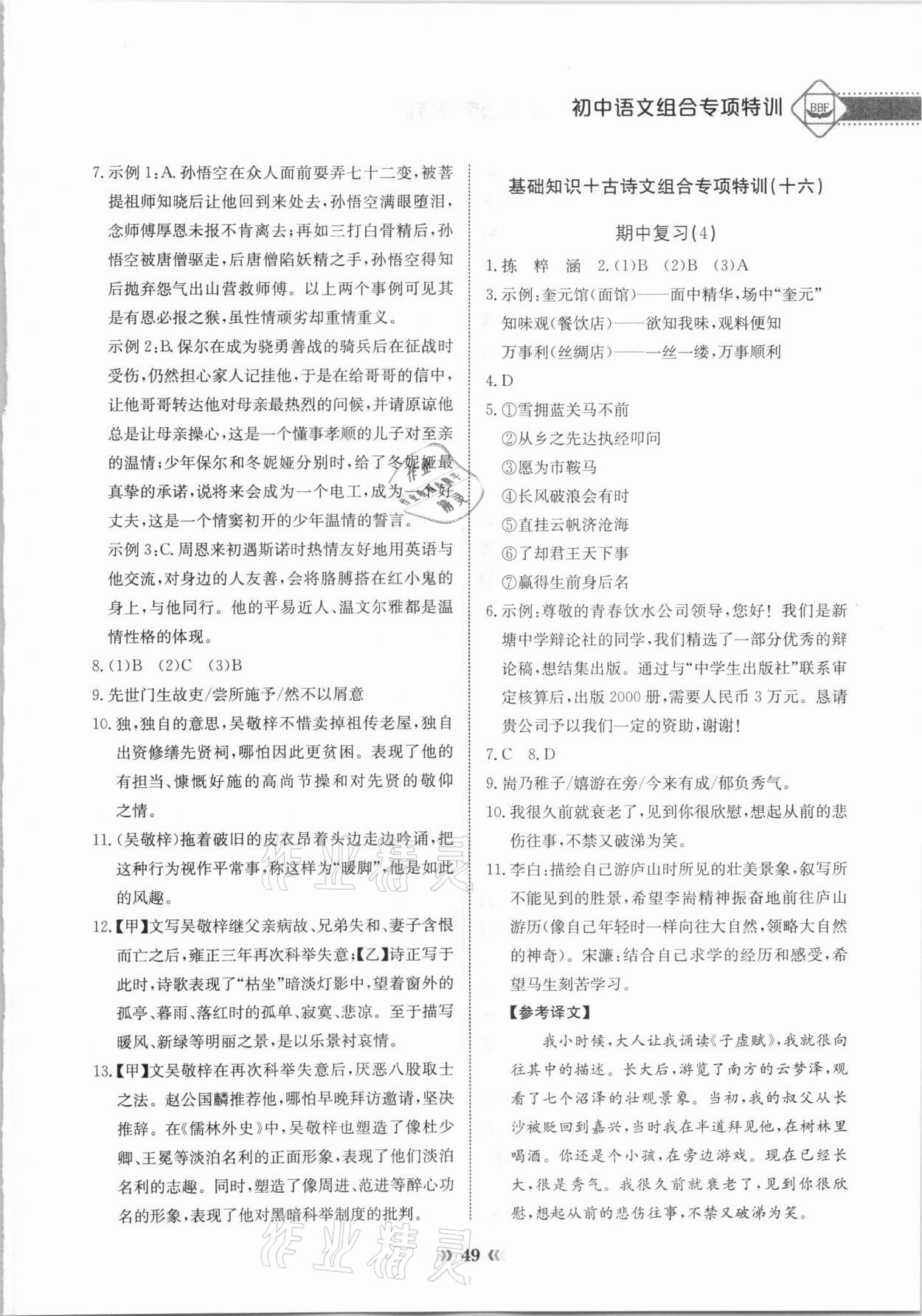 注:目前有些书本章节名称可能整理的还不是很完善,但都是按照顺序排列的,请同学们按照顺序仔细查找。练习册 2020年初中语文中考专项突破特训基础知识加古诗文 答案主要是用来给同学们做完题方便对答案用的,请勿直接抄袭。