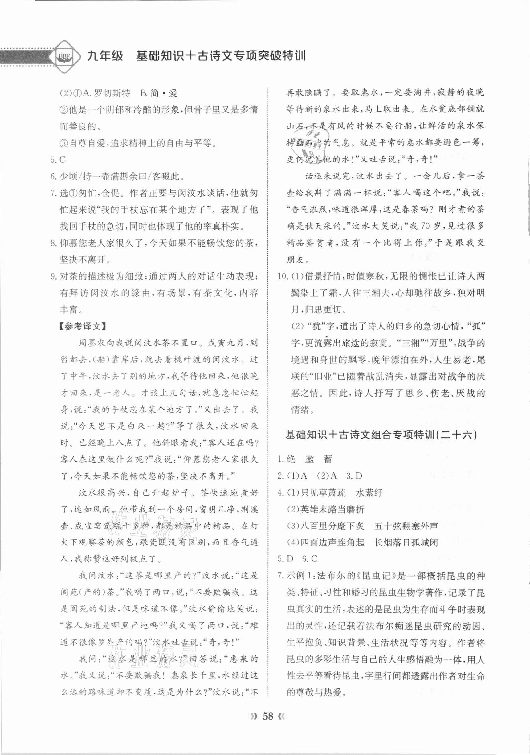 注:目前有些书本章节名称可能整理的还不是很完善,但都是按照顺序排列的,请同学们按照顺序仔细查找。练习册 2020年初中语文中考专项突破特训基础知识加古诗文 答案主要是用来给同学们做完题方便对答案用的,请勿直接抄袭。
