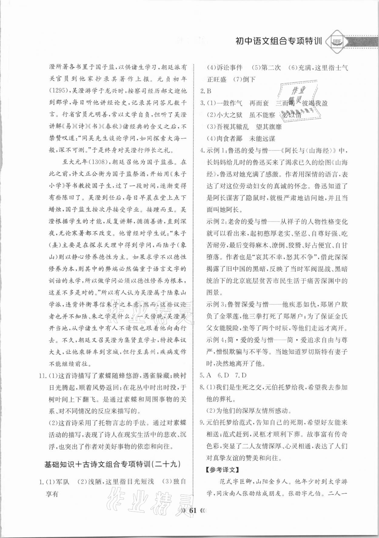 注:目前有些书本章节名称可能整理的还不是很完善,但都是按照顺序排列的,请同学们按照顺序仔细查找。练习册 2020年初中语文中考专项突破特训基础知识加古诗文 答案主要是用来给同学们做完题方便对答案用的,请勿直接抄袭。