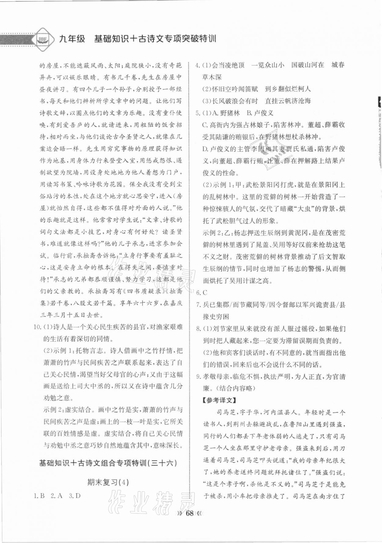 注:目前有些书本章节名称可能整理的还不是很完善,但都是按照顺序排列的,请同学们按照顺序仔细查找。练习册 2020年初中语文中考专项突破特训基础知识加古诗文 答案主要是用来给同学们做完题方便对答案用的,请勿直接抄袭。