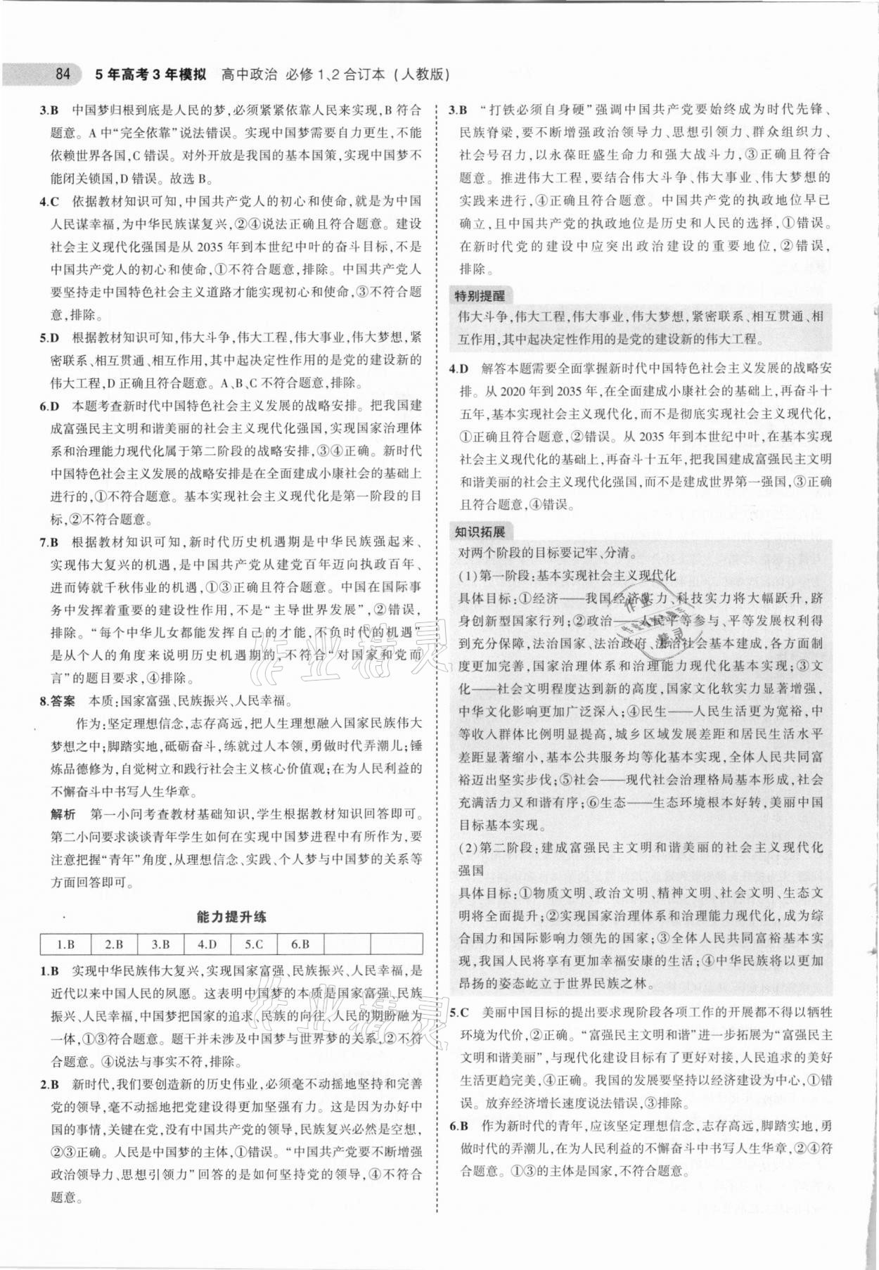 注:目前有些书本章节名称可能整理的还不是很完善,但都是按照顺序排列的,请同学们按照顺序仔细查找。练习册 2021年5年高考3年模拟高中政治必修1必修2合订本人教版 答案主要是用来给同学们做完题方便对答案用的,请勿直接抄袭。
