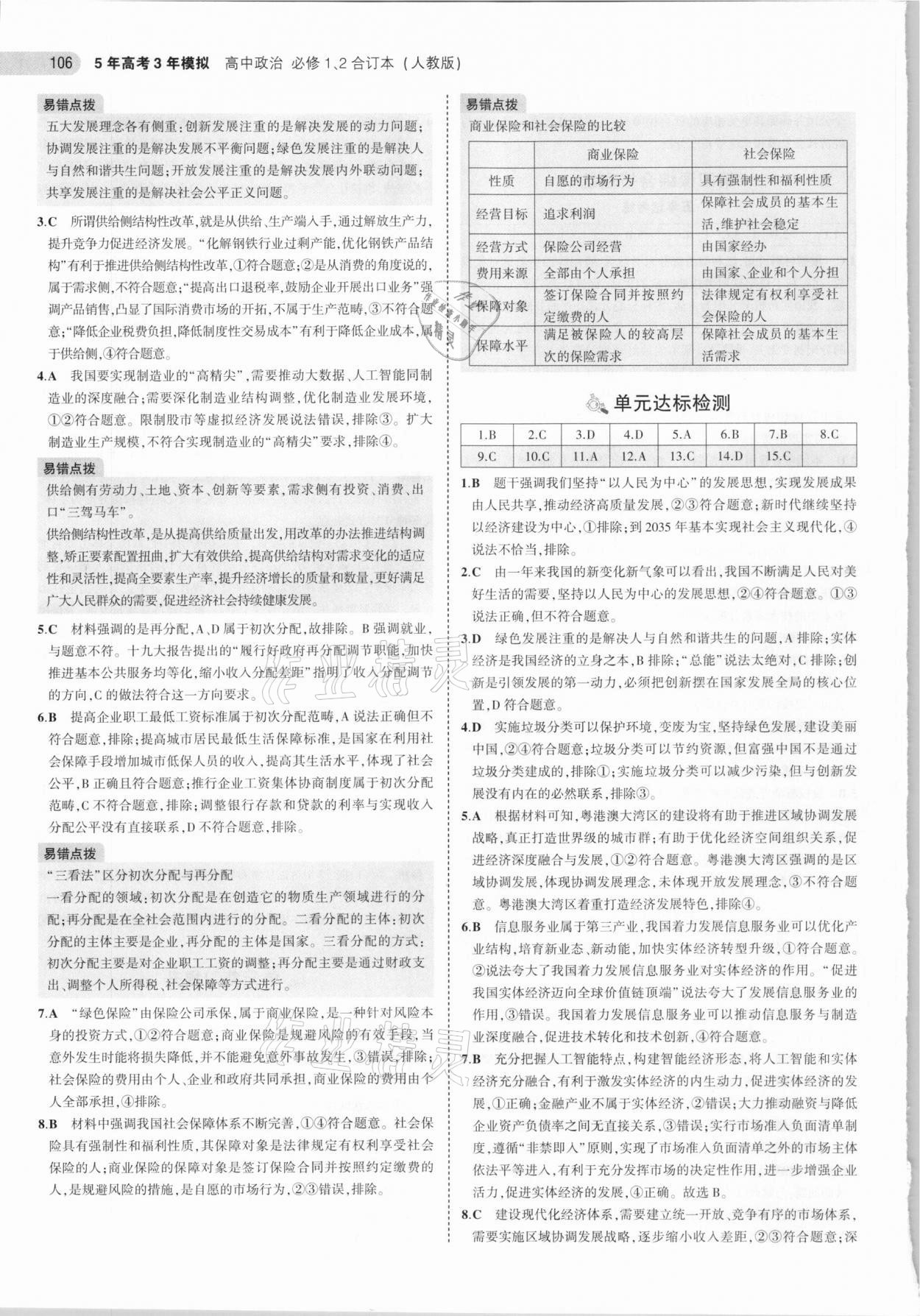 2021年5年高考3年模拟高中政治必修1必修2合订本人教版