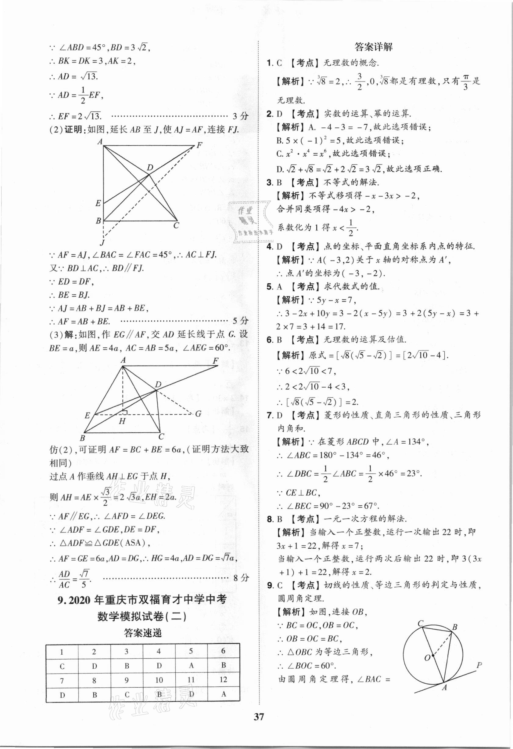 注:目前有些书本章节名称可能整理的还不是很完善,但都是按照顺序排列的,请同学们按照顺序仔细查找。练习册 2021年中考真题汇编数学重庆专版 答案主要是用来给同学们做完题方便对答案用的,请勿直接抄袭。