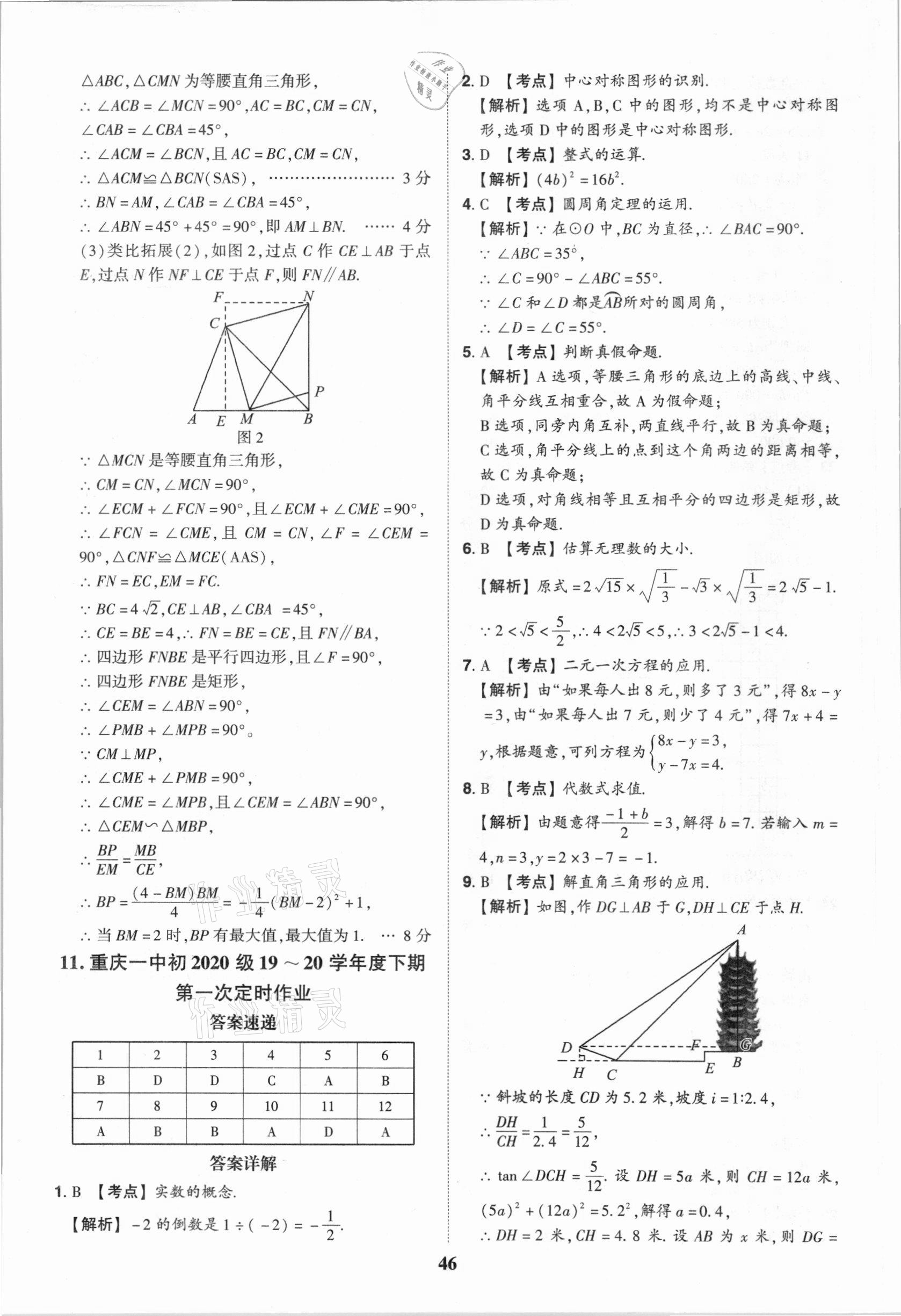 注:目前有些书本章节名称可能整理的还不是很完善,但都是按照顺序排列的,请同学们按照顺序仔细查找。练习册 2021年中考真题汇编数学重庆专版 答案主要是用来给同学们做完题方便对答案用的,请勿直接抄袭。