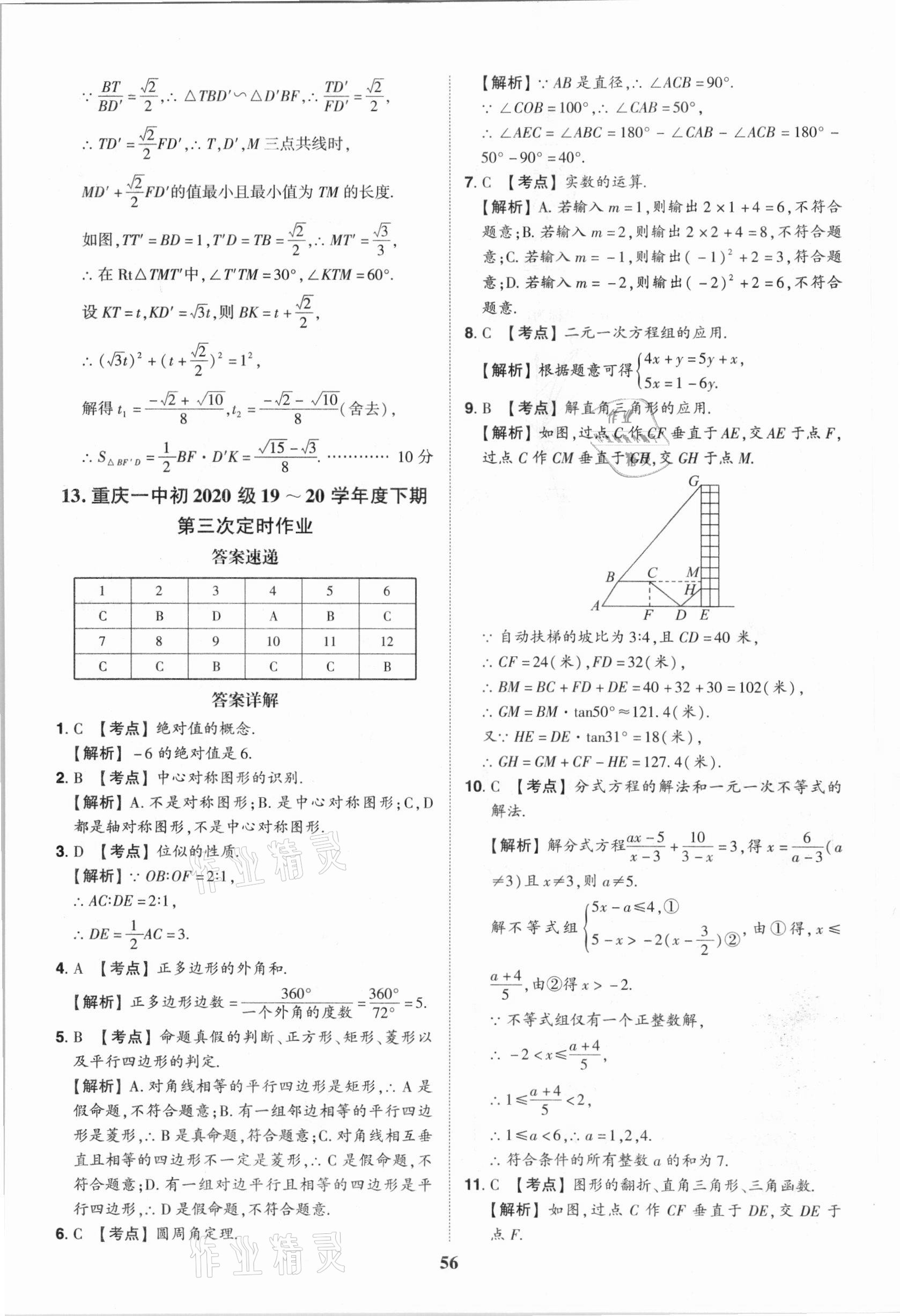 注:目前有些书本章节名称可能整理的还不是很完善,但都是按照顺序排列的,请同学们按照顺序仔细查找。练习册 2021年中考真题汇编数学重庆专版 答案主要是用来给同学们做完题方便对答案用的,请勿直接抄袭。