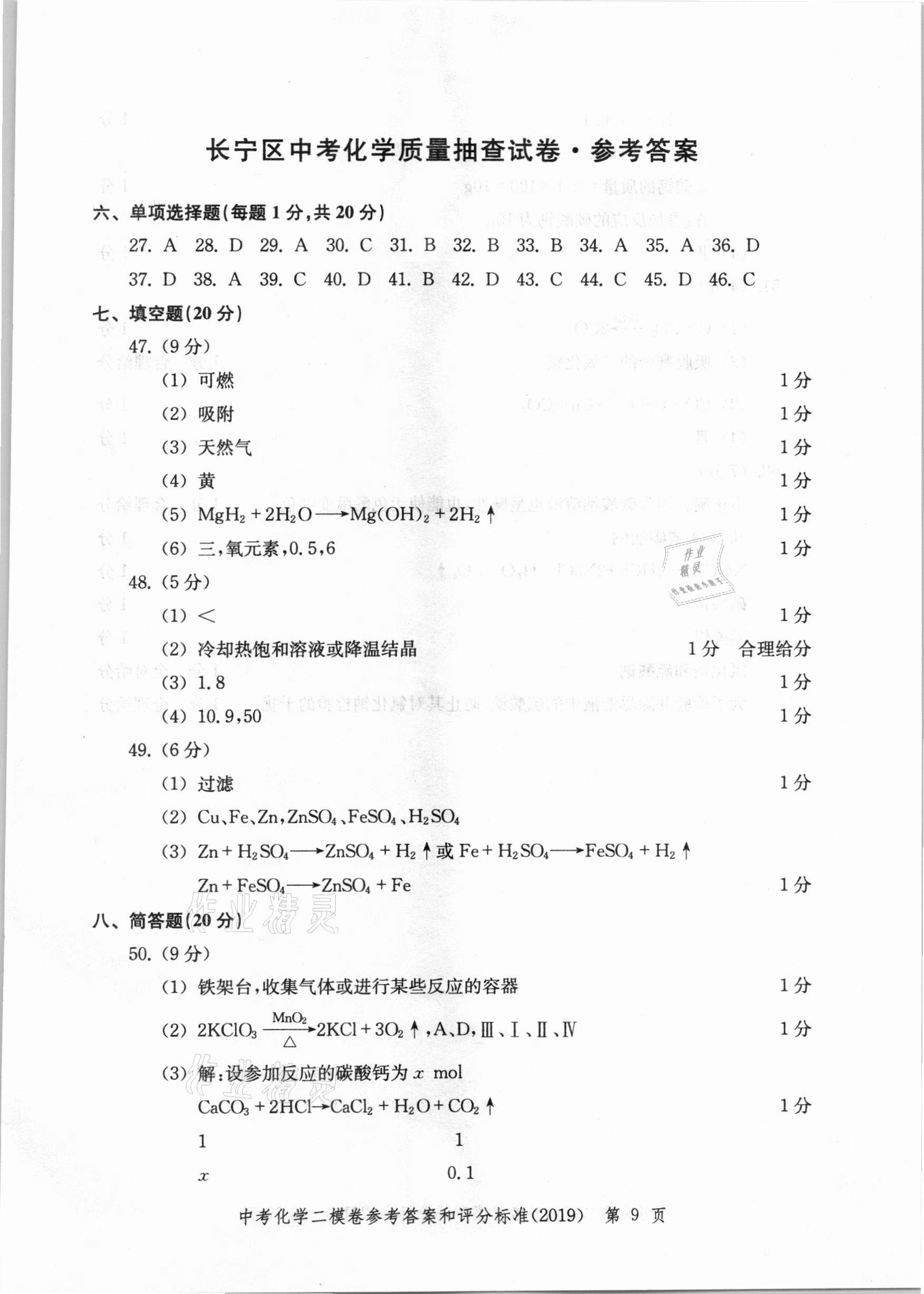 2021年走向成功上海市各区中考考前质量抽查试卷精编化学