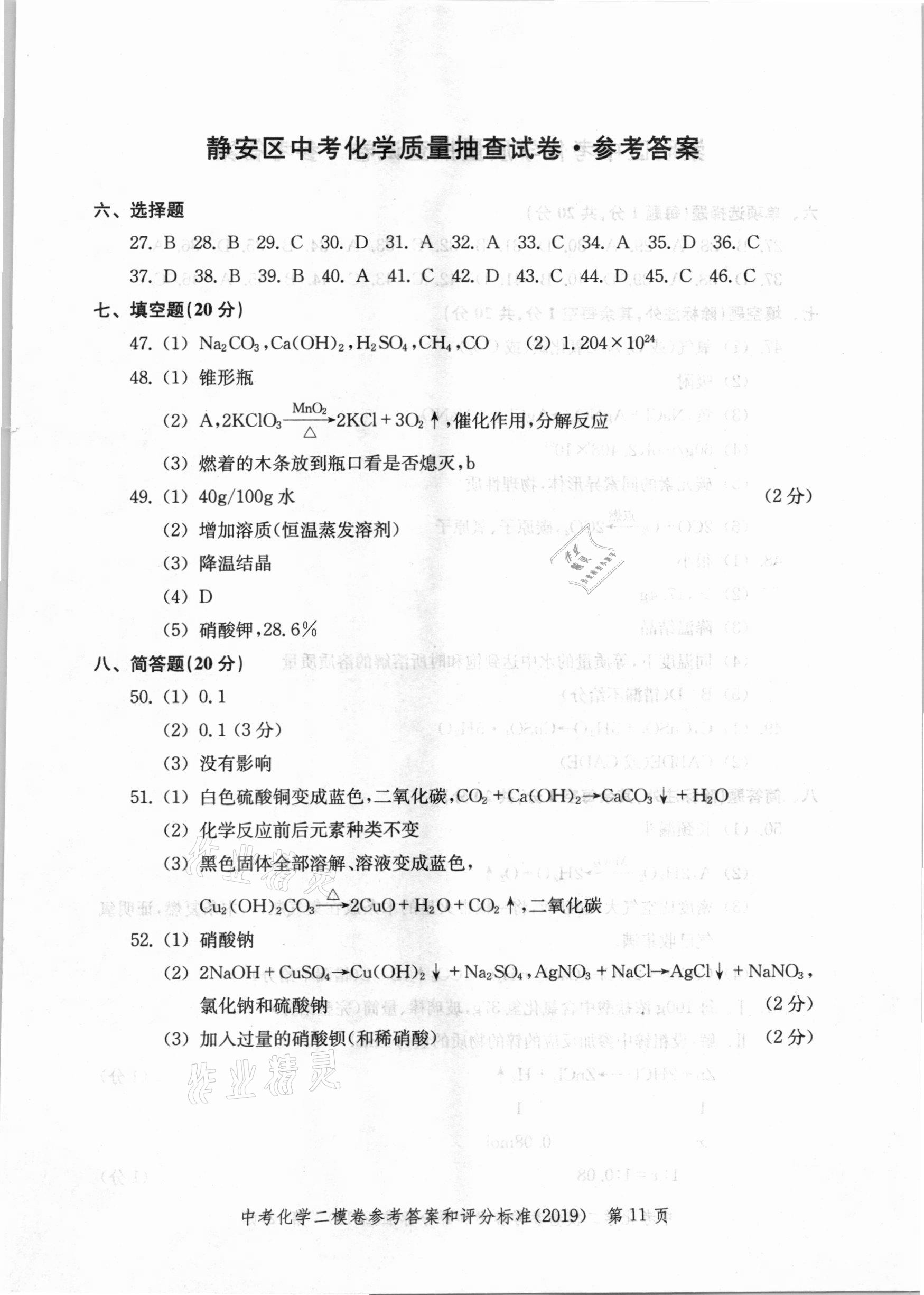 2021年走向成功上海市各区中考考前质量抽查试卷精编化学