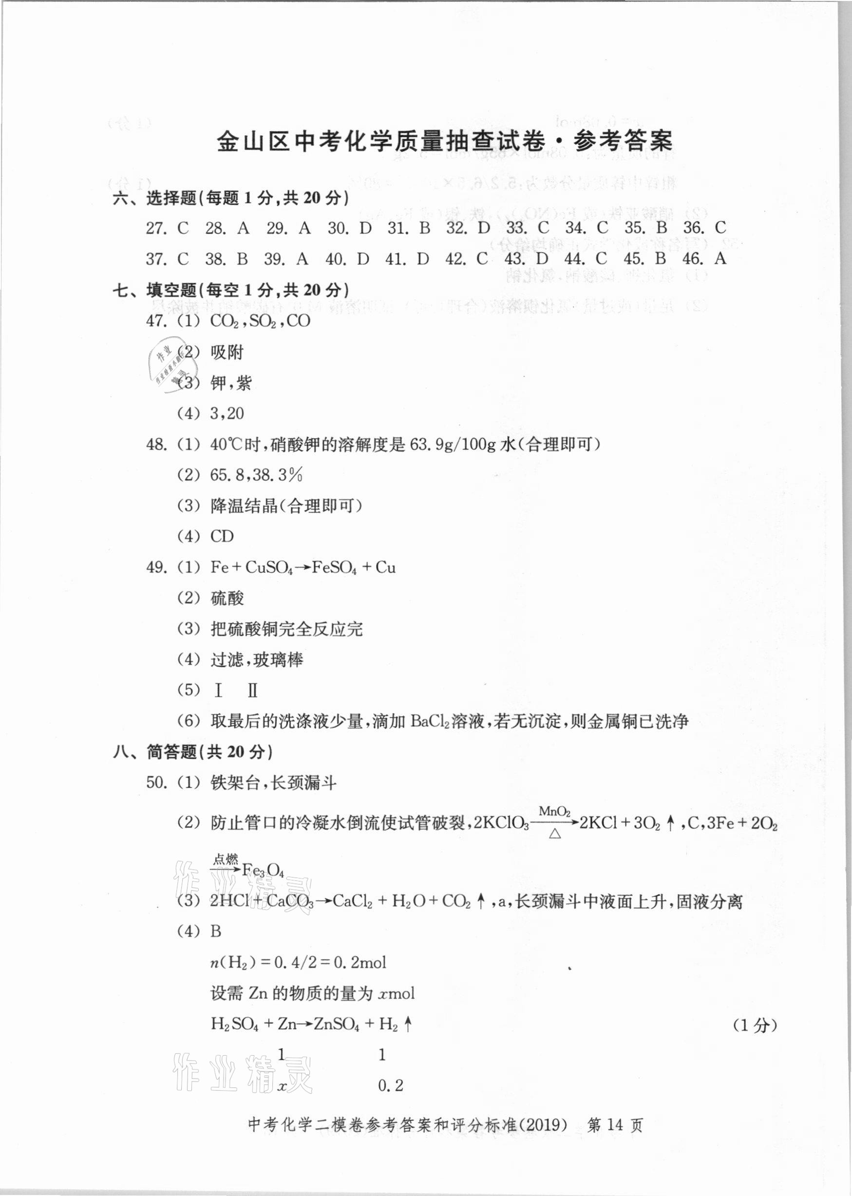 2021年走向成功上海市各区中考考前质量抽查试卷精编化学