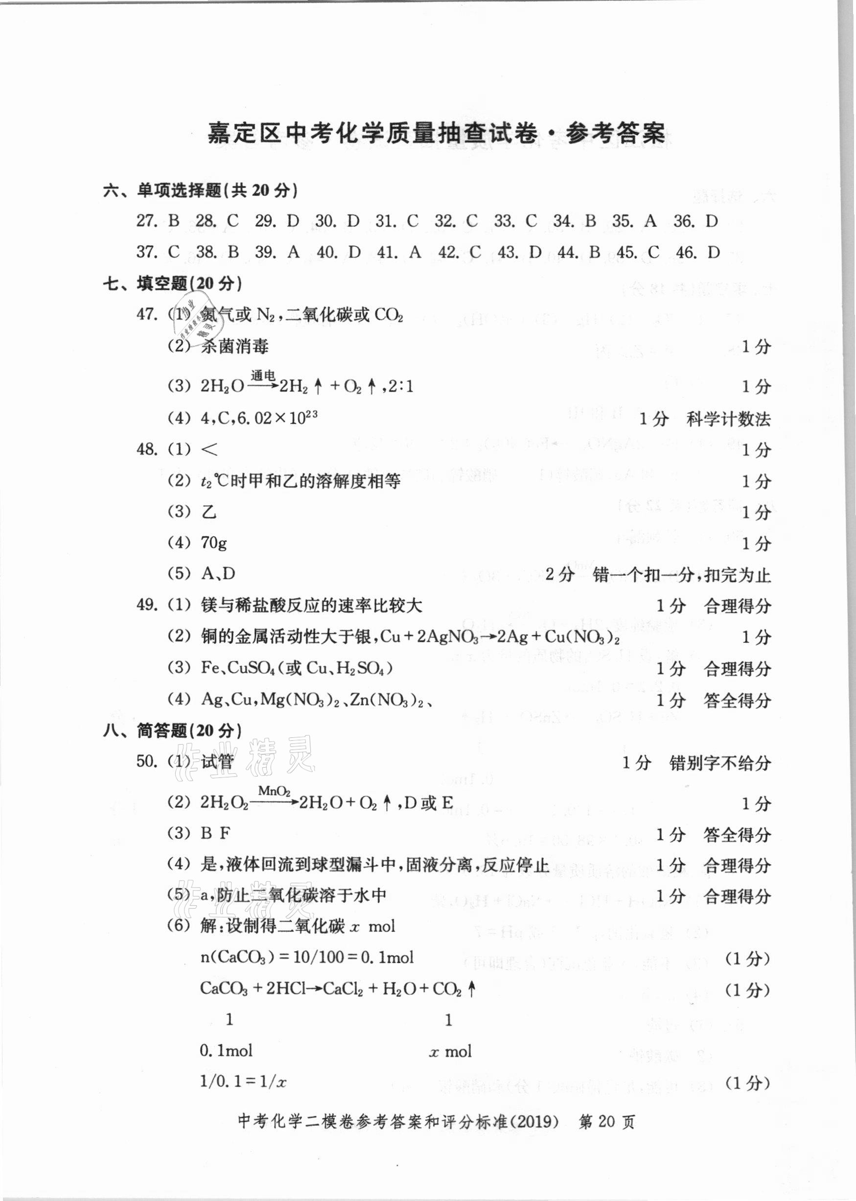 2021年走向成功上海市各区中考考前质量抽查试卷精编化学