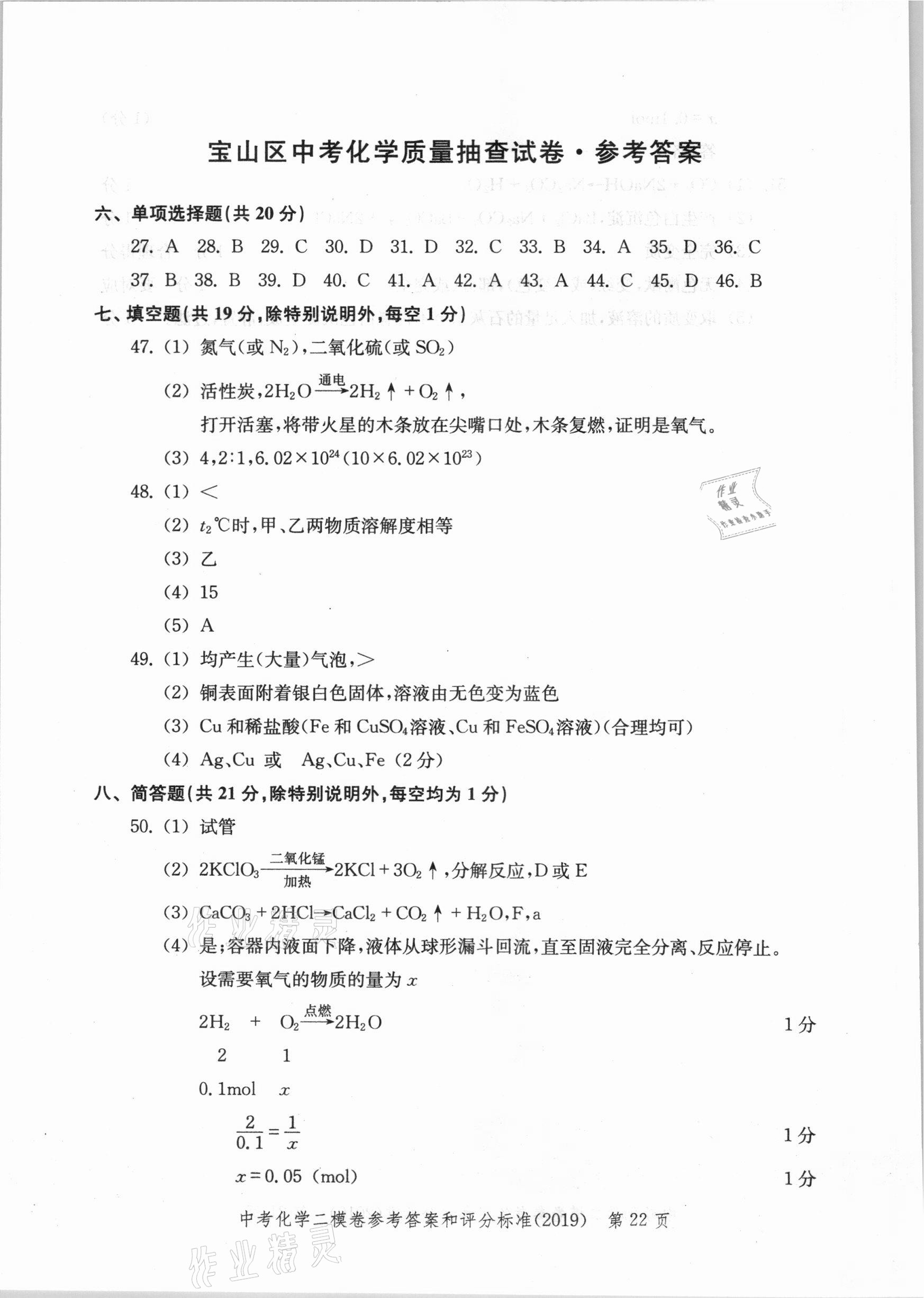 2021年走向成功上海市各区中考考前质量抽查试卷精编化学
