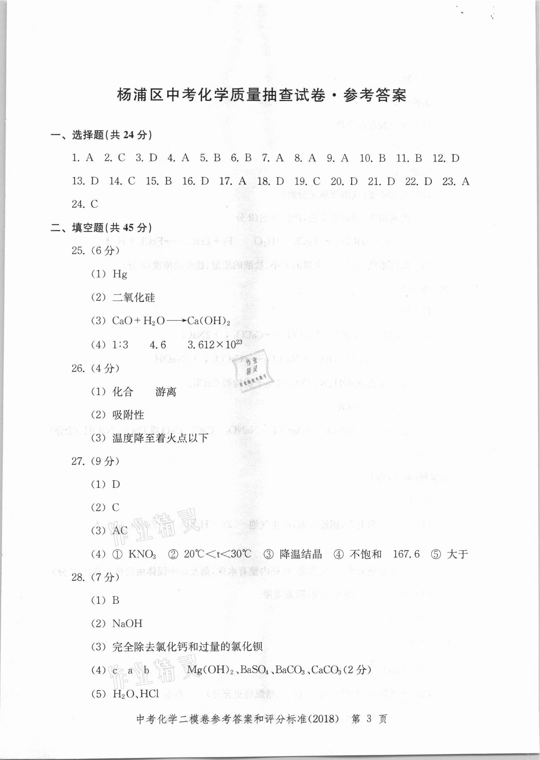2021年走向成功上海市各区中考考前质量抽查试卷精编化学