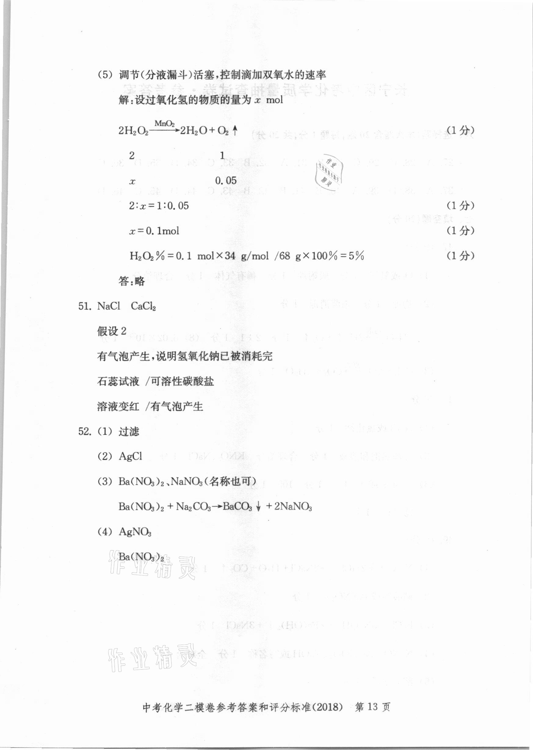 2021年走向成功上海市各区中考考前质量抽查试卷精编化学