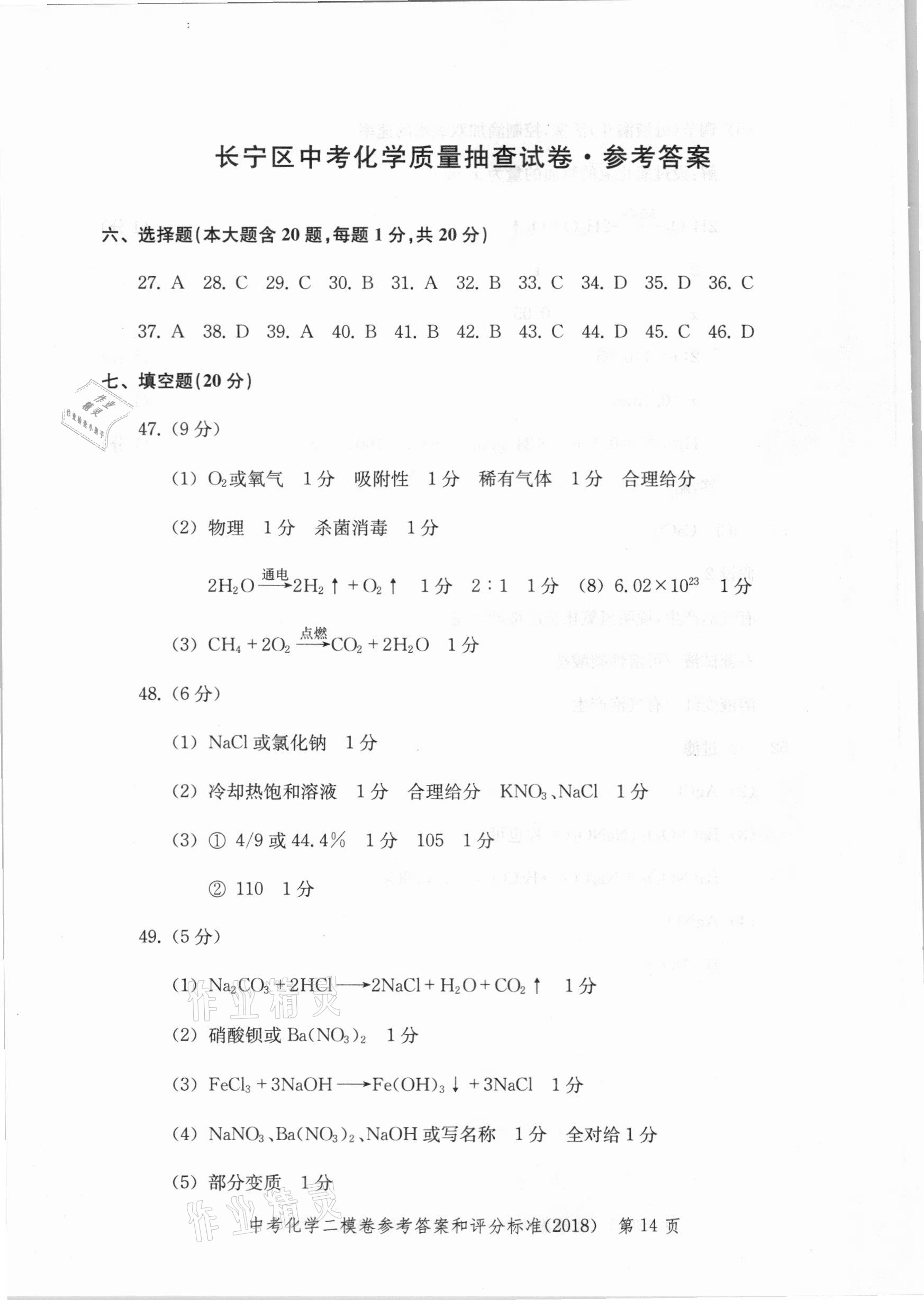 2021年走向成功上海市各区中考考前质量抽查试卷精编化学