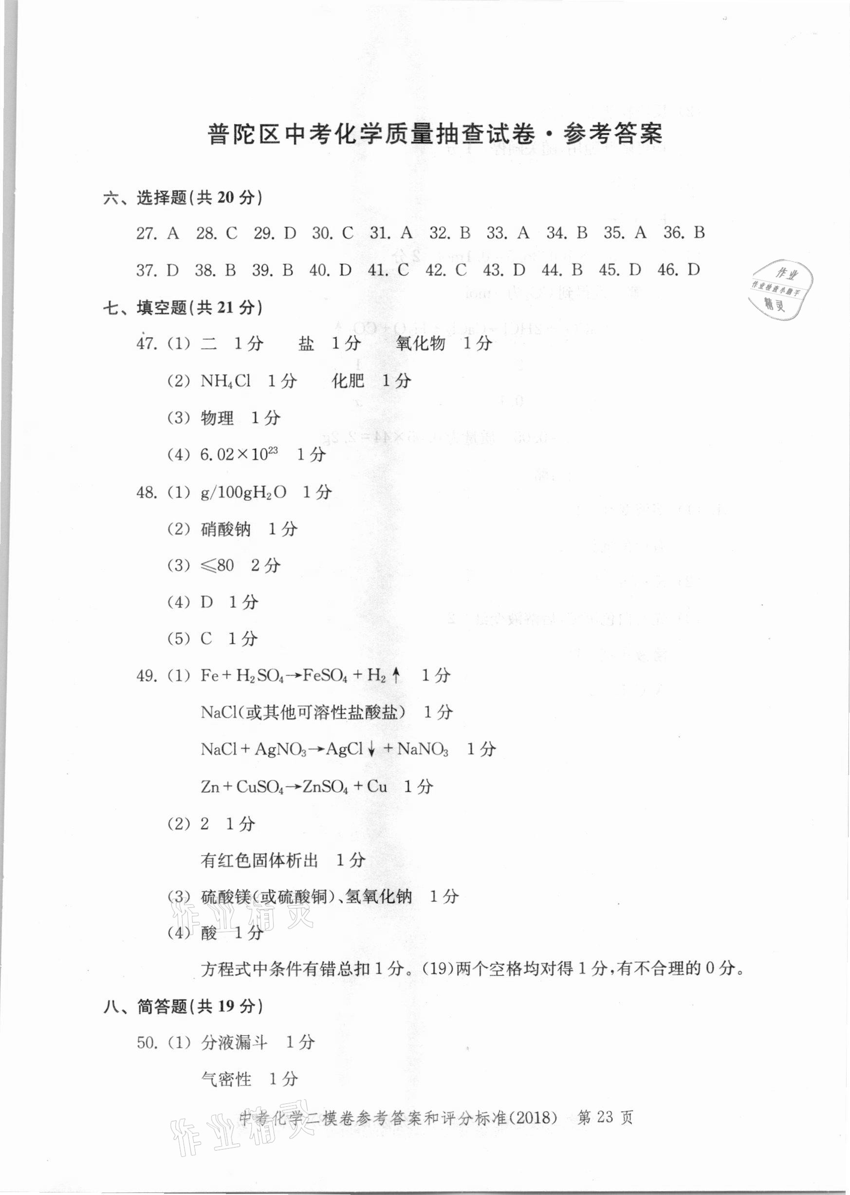 2021年走向成功上海市各区中考考前质量抽查试卷精编化学