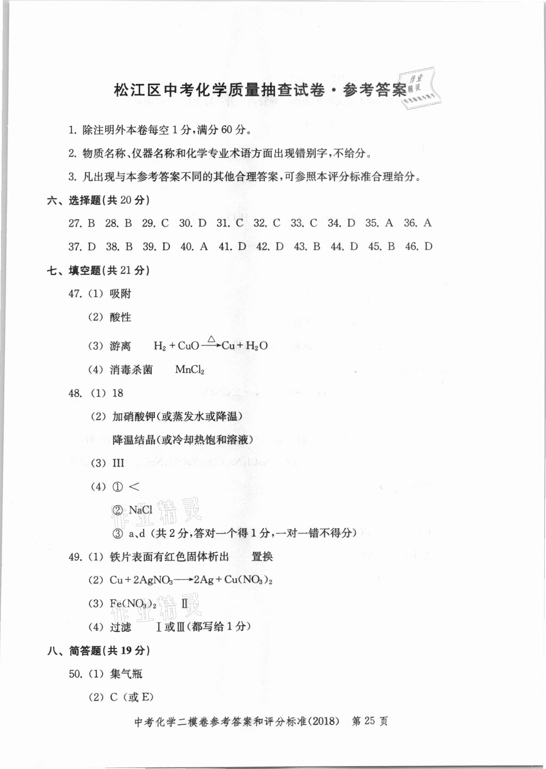 2021年走向成功上海市各区中考考前质量抽查试卷精编化学