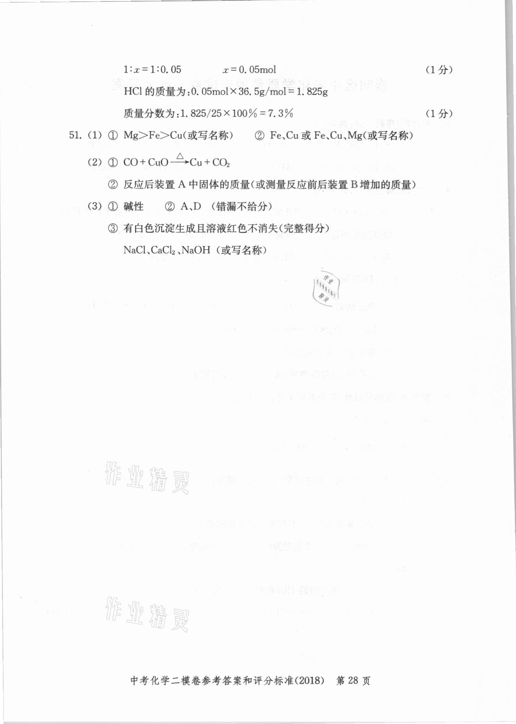 2021年走向成功上海市各区中考考前质量抽查试卷精编化学