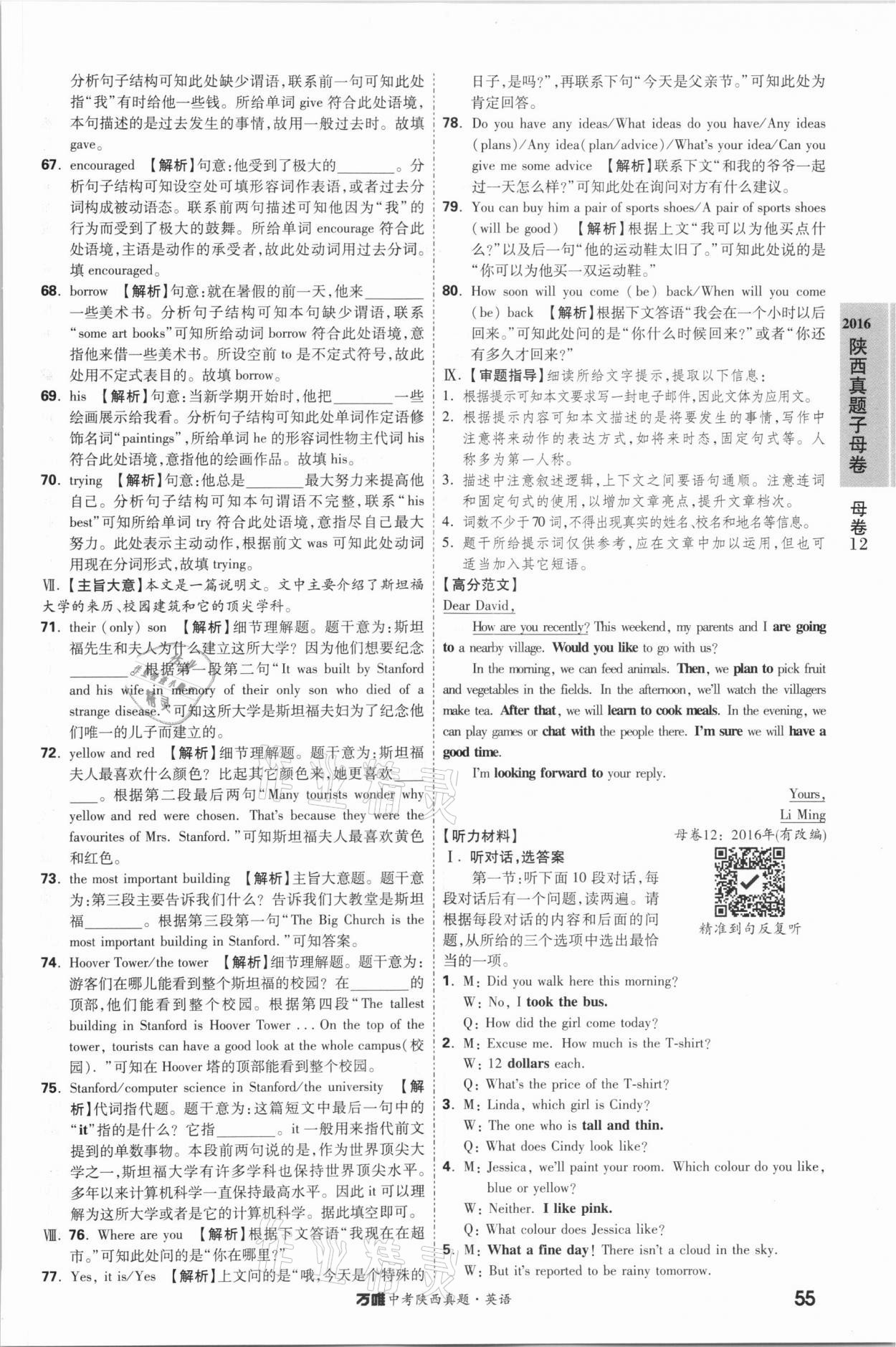 注:目前有些书本章节名称可能整理的还不是很完善,但都是按照顺序排列的,请同学们按照顺序仔细查找。练习册 2021年万唯中考陕西真题英语 答案主要是用来给同学们做完题方便对答案用的,请勿直接抄袭。