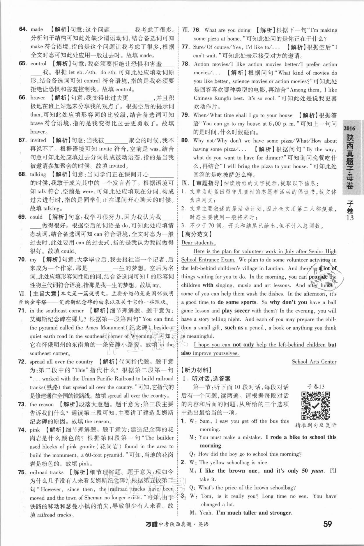 注:目前有些书本章节名称可能整理的还不是很完善,但都是按照顺序排列的,请同学们按照顺序仔细查找。练习册 2021年万唯中考陕西真题英语 答案主要是用来给同学们做完题方便对答案用的,请勿直接抄袭。