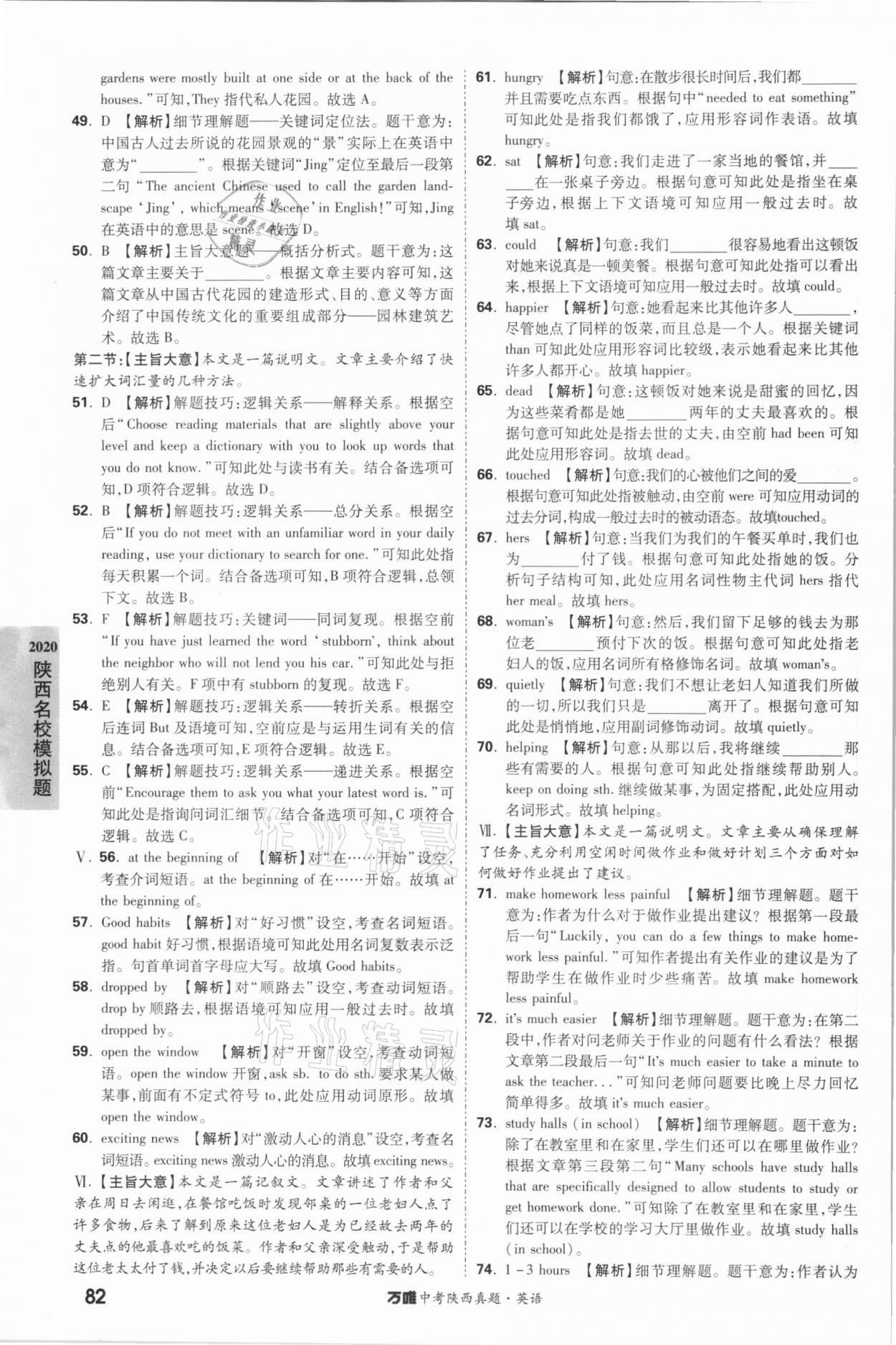 注:目前有些书本章节名称可能整理的还不是很完善,但都是按照顺序排列的,请同学们按照顺序仔细查找。练习册 2021年万唯中考陕西真题英语 答案主要是用来给同学们做完题方便对答案用的,请勿直接抄袭。