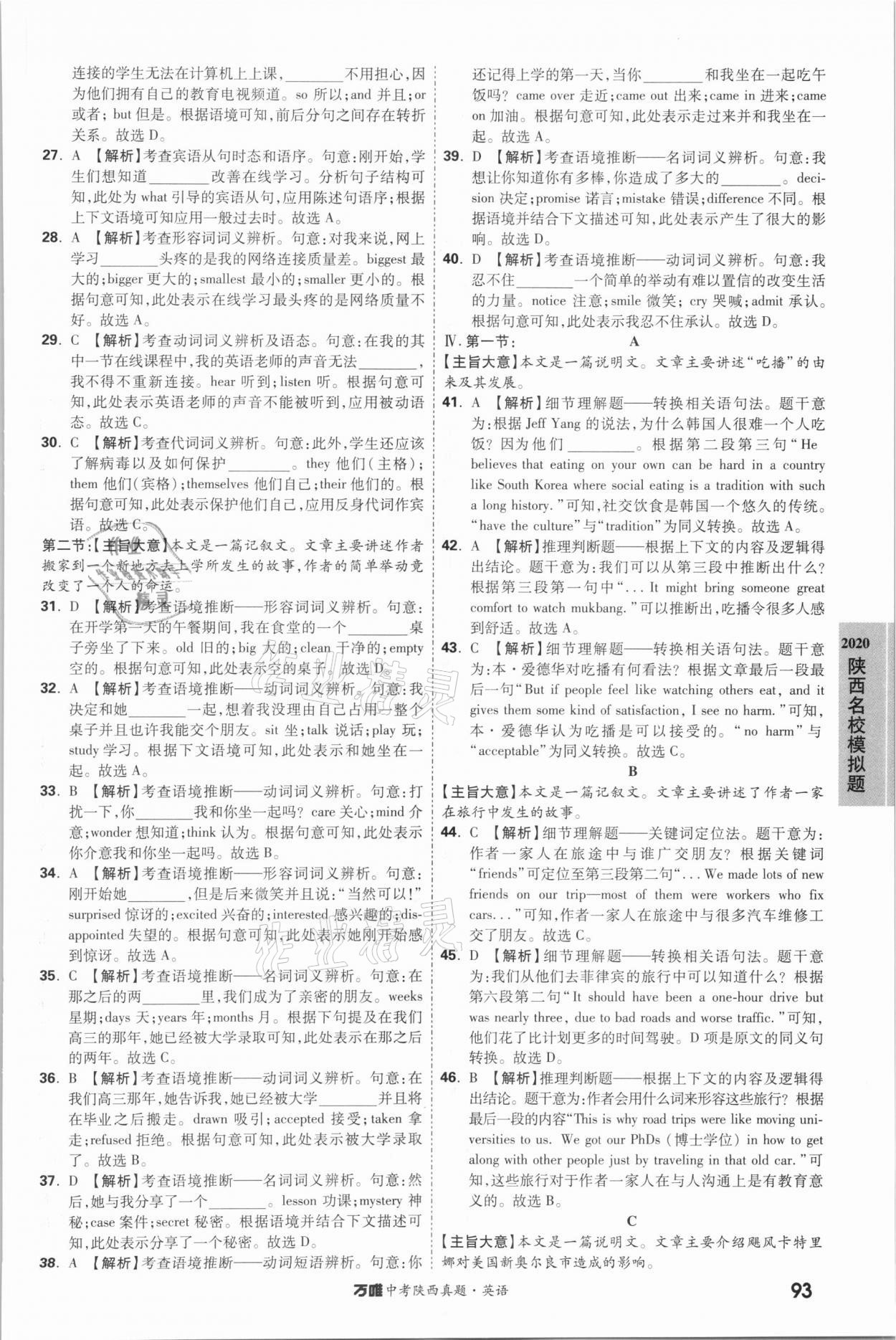 2021年万唯中考陕西真题英语