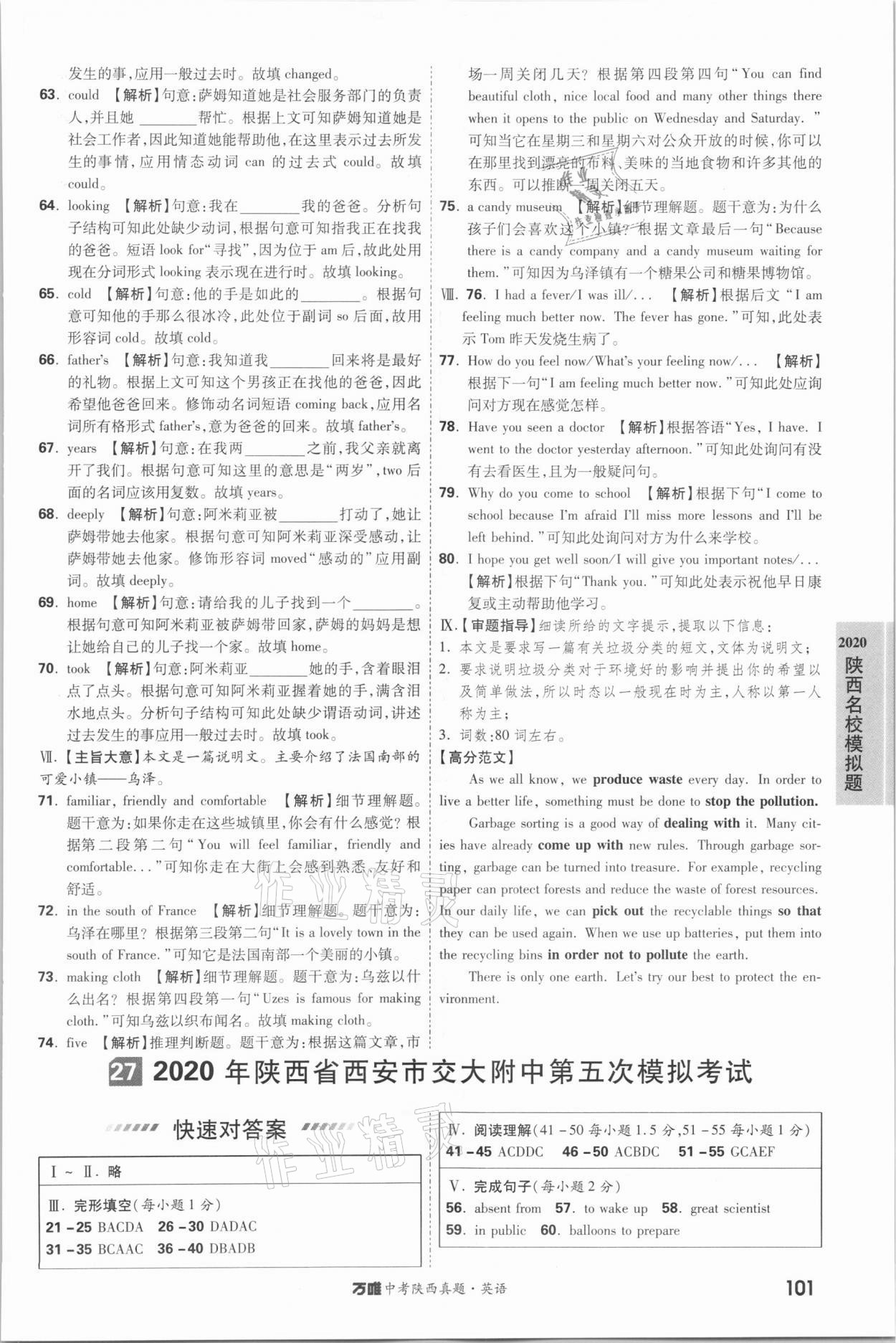 注:目前有些书本章节名称可能整理的还不是很完善,但都是按照顺序排列的,请同学们按照顺序仔细查找。练习册 2021年万唯中考陕西真题英语 答案主要是用来给同学们做完题方便对答案用的,请勿直接抄袭。