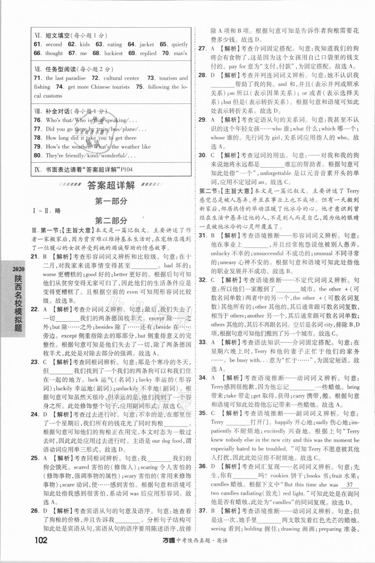 注:目前有些书本章节名称可能整理的还不是很完善,但都是按照顺序排列的,请同学们按照顺序仔细查找。练习册 2021年万唯中考陕西真题英语 答案主要是用来给同学们做完题方便对答案用的,请勿直接抄袭。