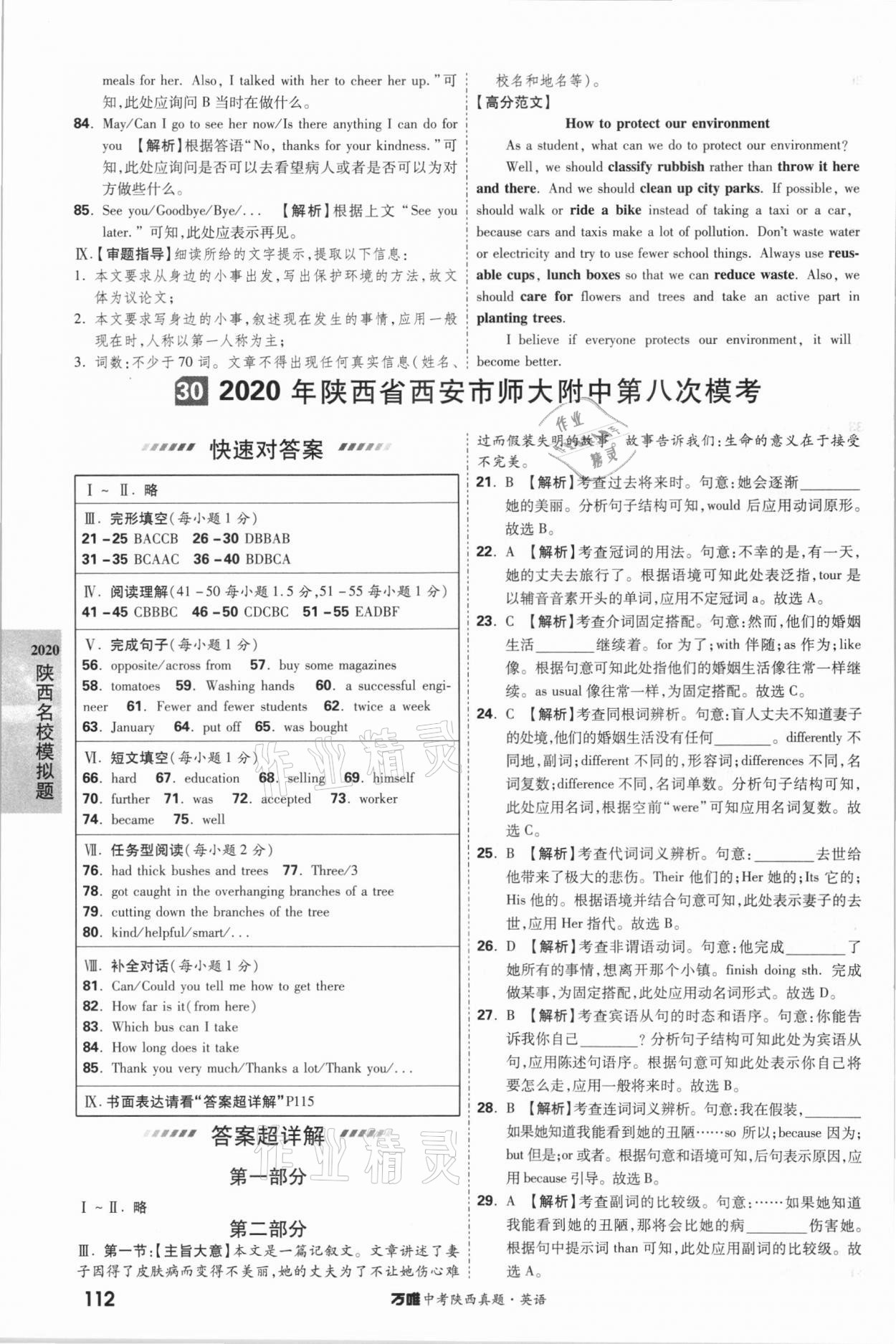 注:目前有些书本章节名称可能整理的还不是很完善,但都是按照顺序排列的,请同学们按照顺序仔细查找。练习册 2021年万唯中考陕西真题英语 答案主要是用来给同学们做完题方便对答案用的,请勿直接抄袭。