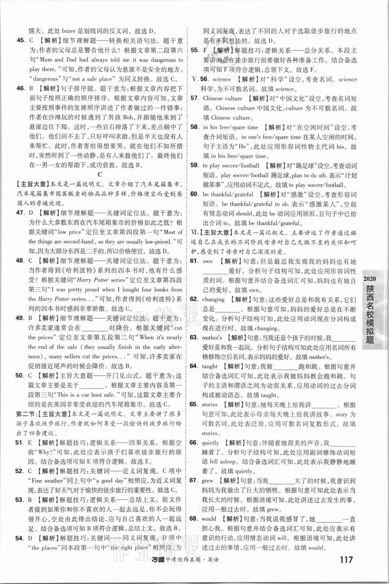 注:目前有些书本章节名称可能整理的还不是很完善,但都是按照顺序排列的,请同学们按照顺序仔细查找。练习册 2021年万唯中考陕西真题英语 答案主要是用来给同学们做完题方便对答案用的,请勿直接抄袭。