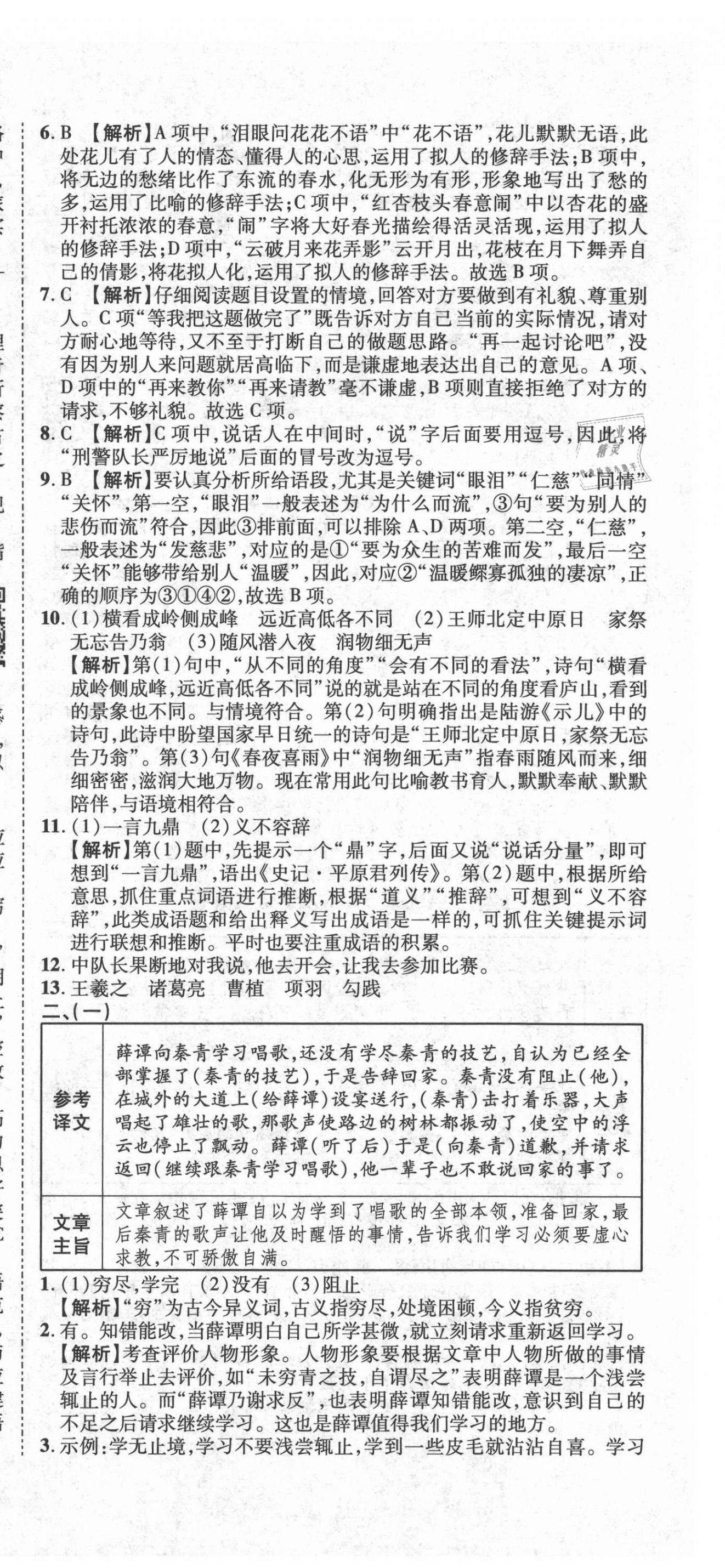 注:目前有些书本章节名称可能整理的还不是很完善,但都是按照顺序排列的,请同学们按照顺序仔细查找。练习册 2021年重点中学招生真题超详解语文 答案主要是用来给同学们做完题方便对答案用的,请勿直接抄袭。