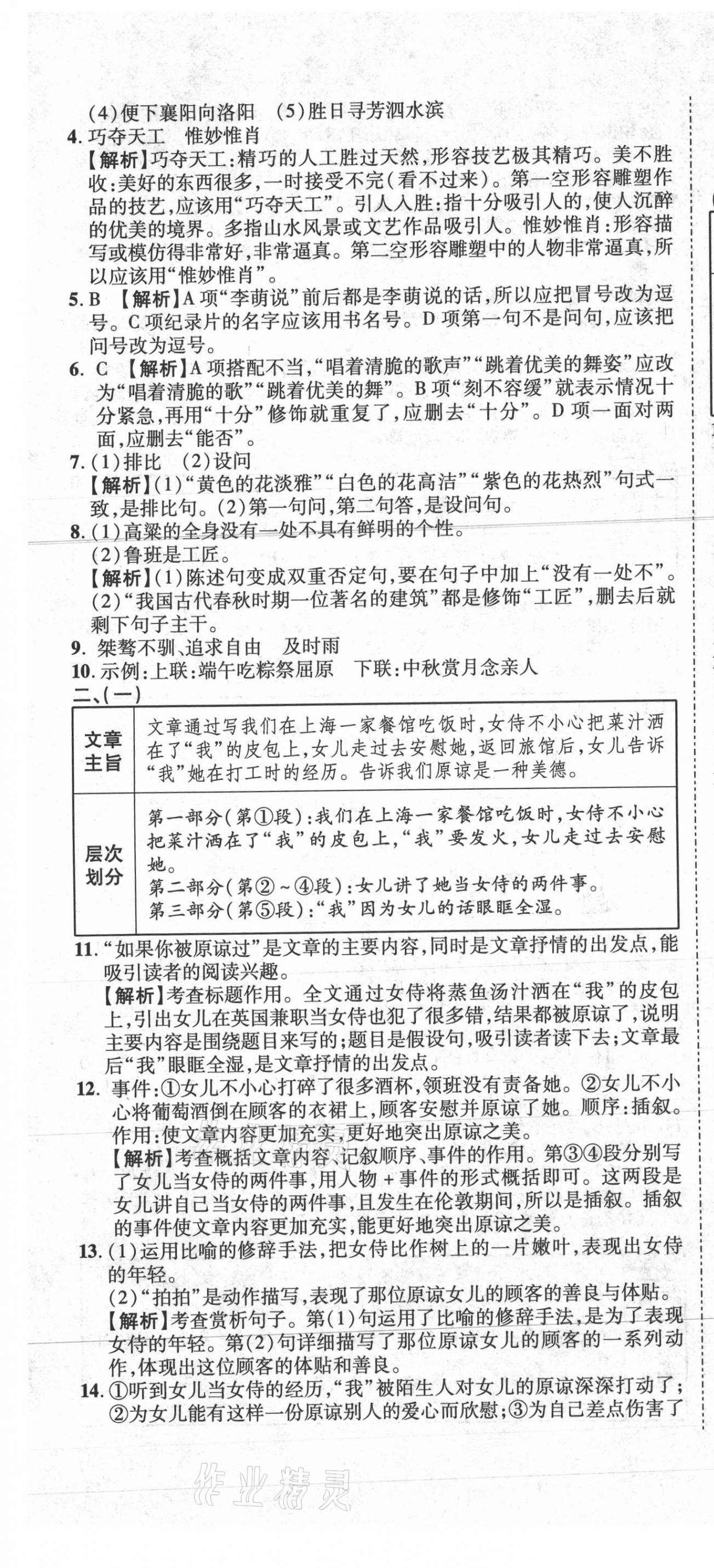 注:目前有些书本章节名称可能整理的还不是很完善,但都是按照顺序排列的,请同学们按照顺序仔细查找。练习册 2021年重点中学招生真题超详解语文 答案主要是用来给同学们做完题方便对答案用的,请勿直接抄袭。