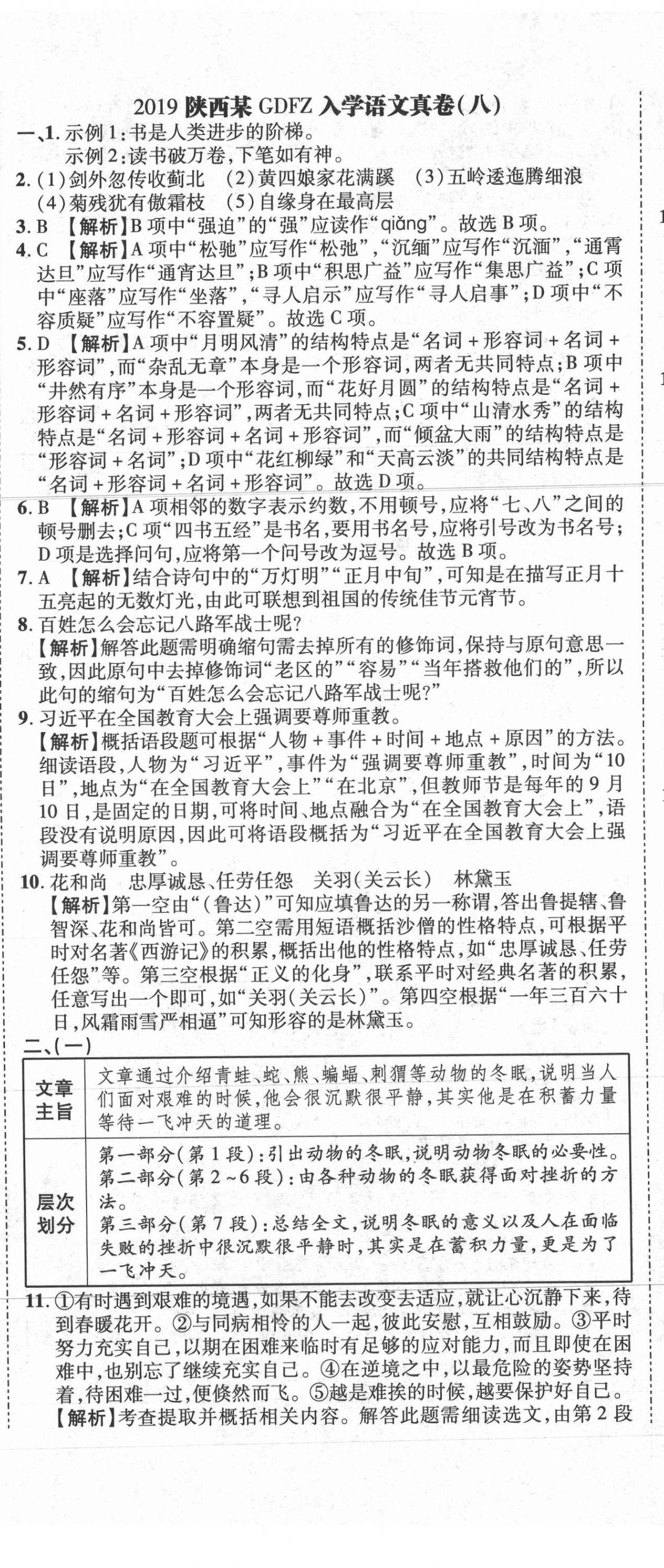 注:目前有些书本章节名称可能整理的还不是很完善,但都是按照顺序排列的,请同学们按照顺序仔细查找。练习册 2021年重点中学招生真题超详解语文 答案主要是用来给同学们做完题方便对答案用的,请勿直接抄袭。