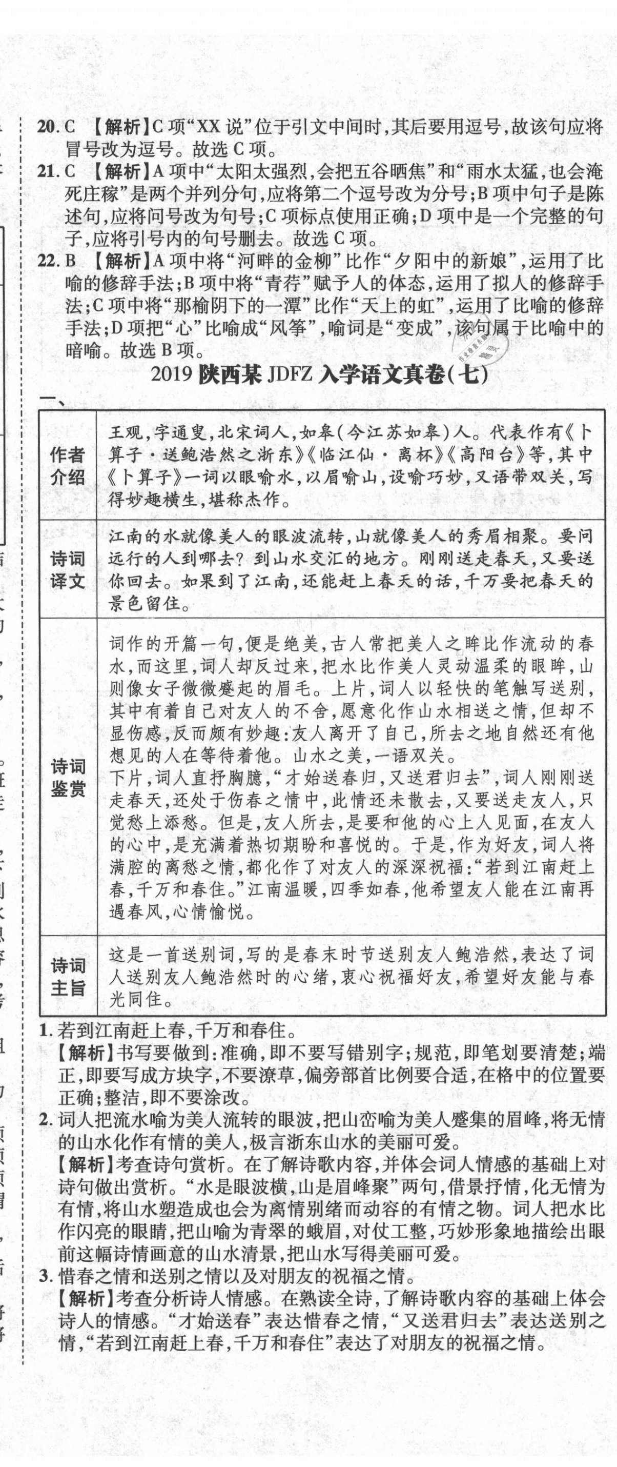 注:目前有些书本章节名称可能整理的还不是很完善,但都是按照顺序排列的,请同学们按照顺序仔细查找。练习册 2021年重点中学招生真题超详解语文 答案主要是用来给同学们做完题方便对答案用的,请勿直接抄袭。
