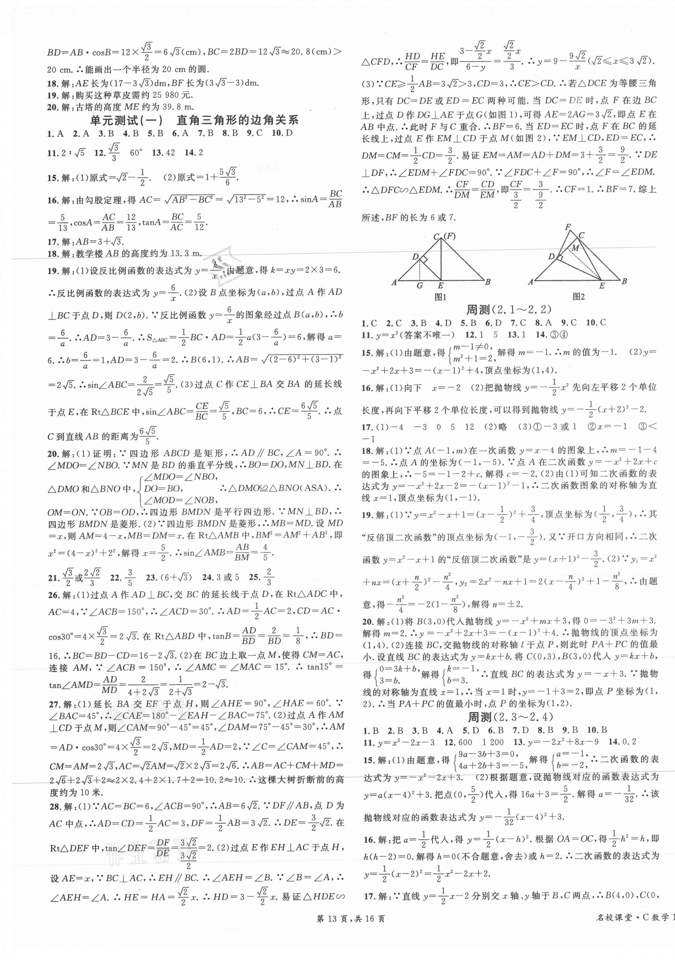 注:目前有些书本章节名称可能整理的还不是很完善,但都是按照顺序排列的,请同学们按照顺序仔细查找。练习册 2021年名校课堂九年级数学下册北师大版四川专版1 答案主要是用来给同学们做完题方便对答案用的,请勿直接抄袭。