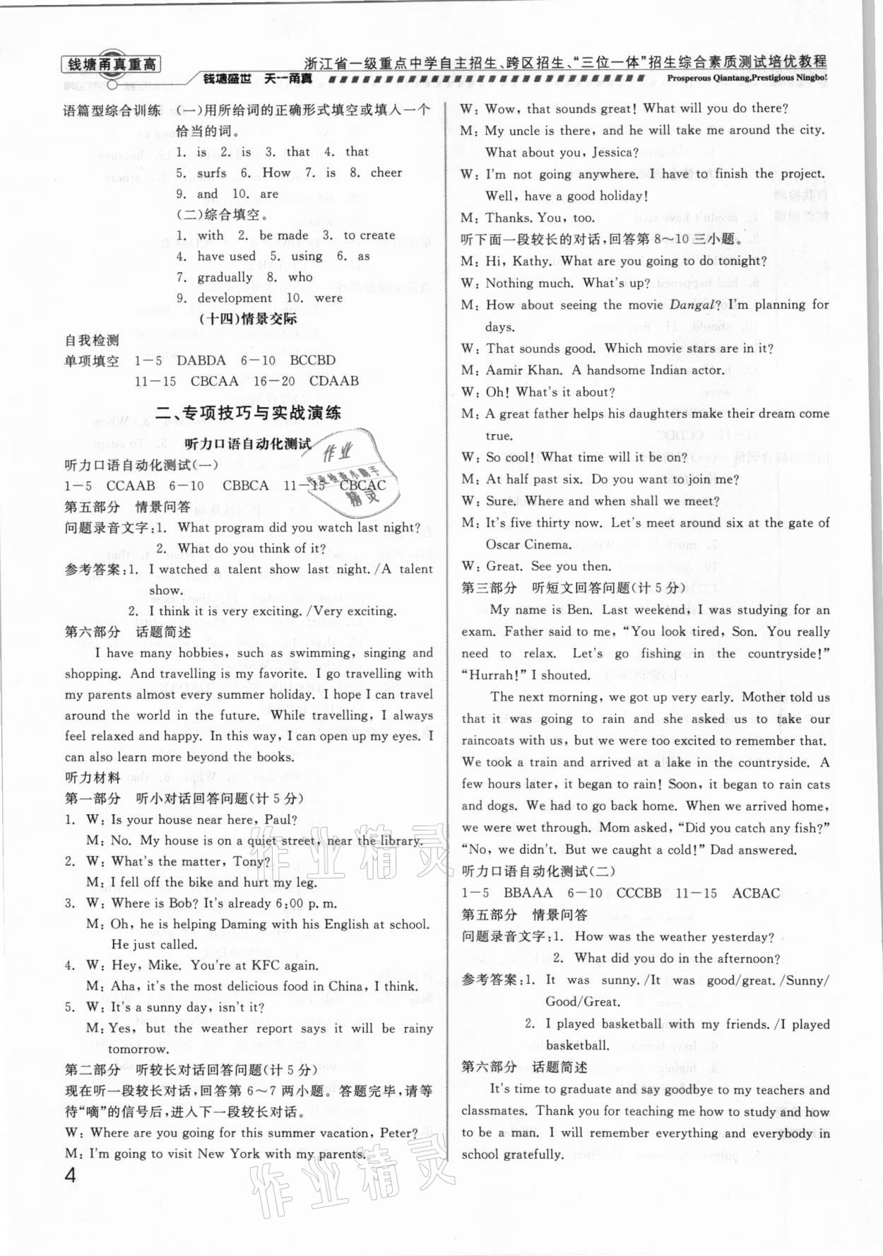 注:目前有些书本章节名称可能整理的还不是很完善,但都是按照顺序排列的,请同学们按照顺序仔细查找。练习册 2021年钱塘甬真重高英语中考 答案主要是用来给同学们做完题方便对答案用的,请勿直接抄袭。