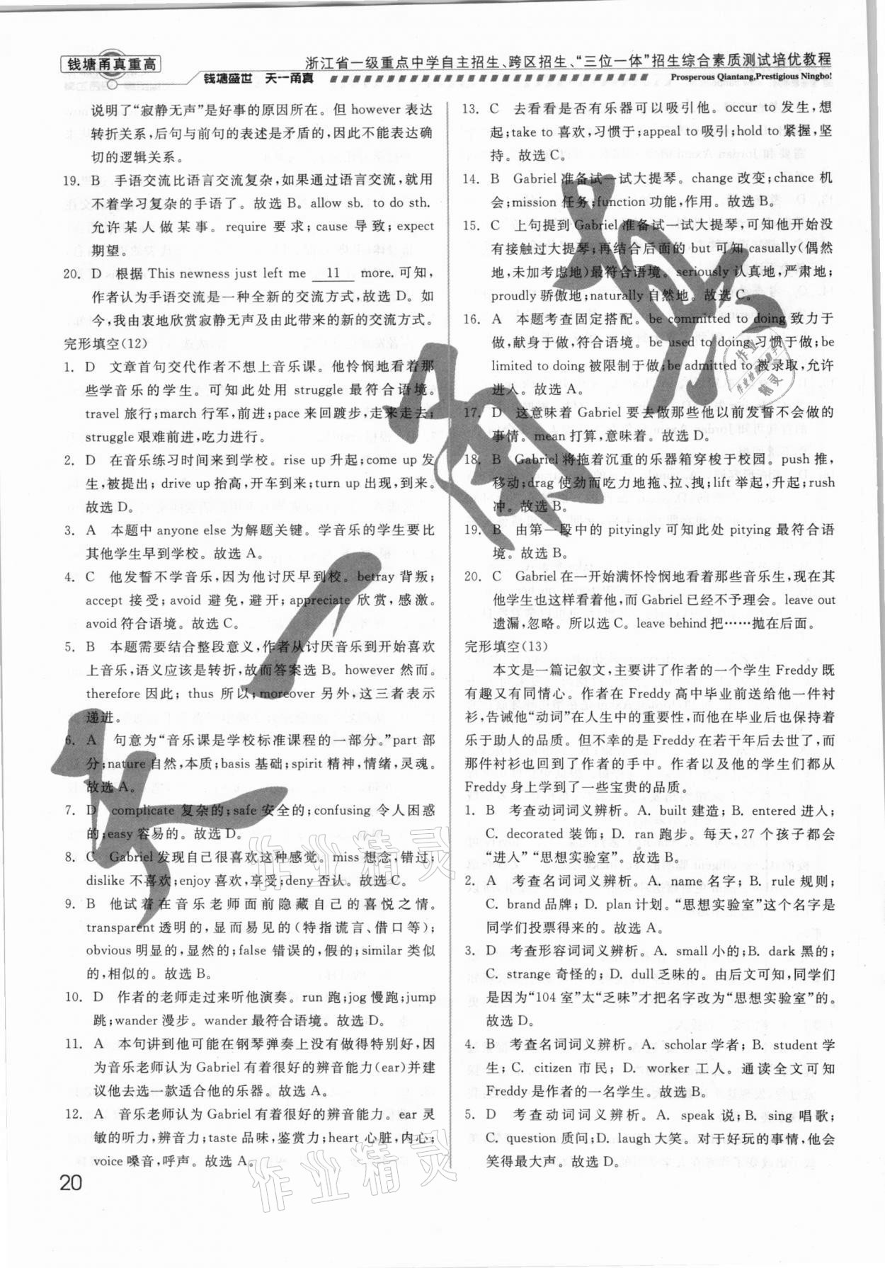 注:目前有些书本章节名称可能整理的还不是很完善,但都是按照顺序排列的,请同学们按照顺序仔细查找。练习册 2021年钱塘甬真重高英语中考 答案主要是用来给同学们做完题方便对答案用的,请勿直接抄袭。