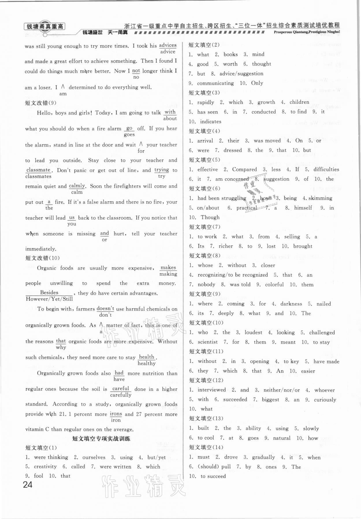 注:目前有些书本章节名称可能整理的还不是很完善,但都是按照顺序排列的,请同学们按照顺序仔细查找。练习册 2021年钱塘甬真重高英语中考 答案主要是用来给同学们做完题方便对答案用的,请勿直接抄袭。