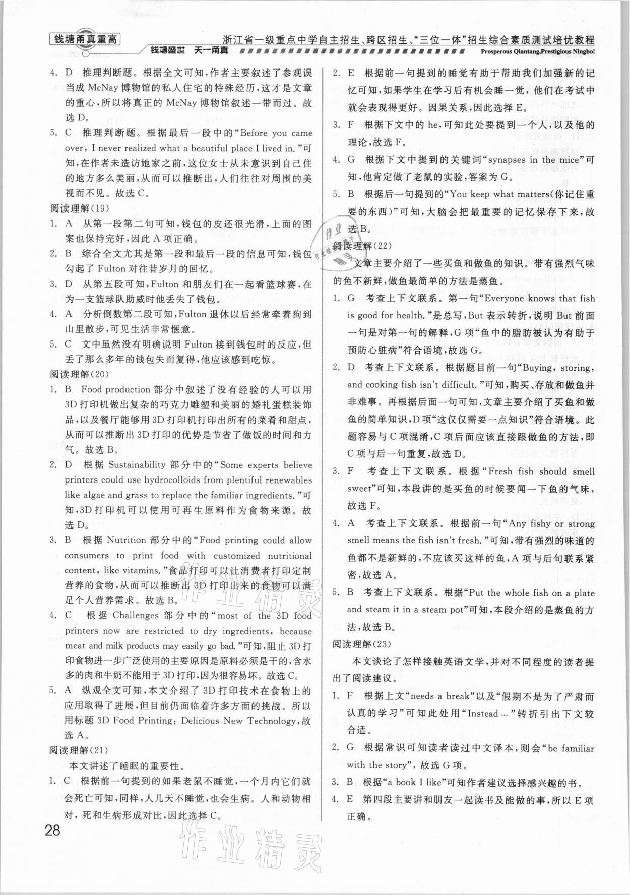 注:目前有些书本章节名称可能整理的还不是很完善,但都是按照顺序排列的,请同学们按照顺序仔细查找。练习册 2021年钱塘甬真重高英语中考 答案主要是用来给同学们做完题方便对答案用的,请勿直接抄袭。