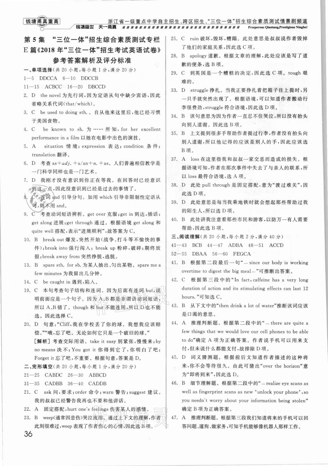 注:目前有些书本章节名称可能整理的还不是很完善,但都是按照顺序排列的,请同学们按照顺序仔细查找。练习册 2021年钱塘甬真重高英语中考 答案主要是用来给同学们做完题方便对答案用的,请勿直接抄袭。