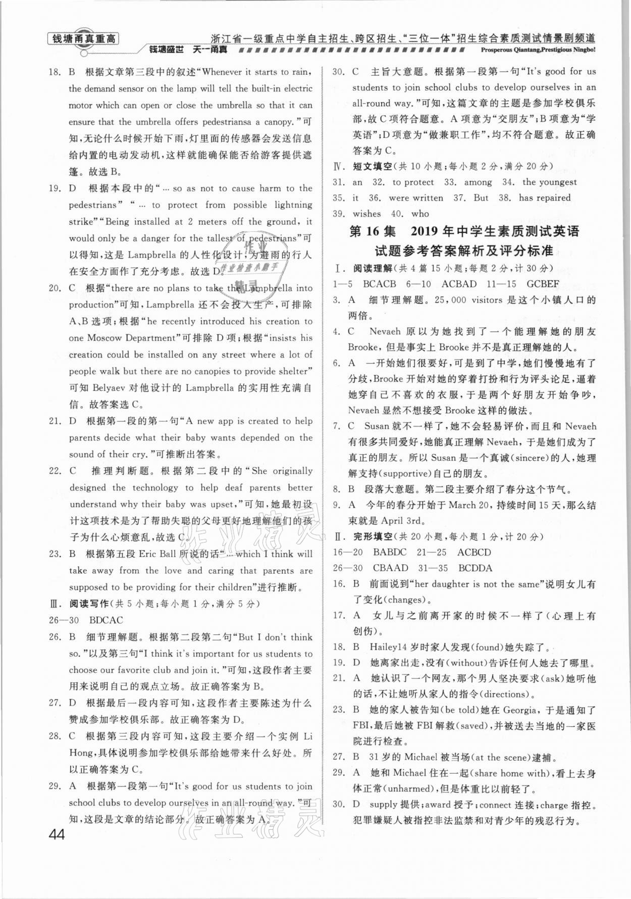 注:目前有些书本章节名称可能整理的还不是很完善,但都是按照顺序排列的,请同学们按照顺序仔细查找。练习册 2021年钱塘甬真重高英语中考 答案主要是用来给同学们做完题方便对答案用的,请勿直接抄袭。