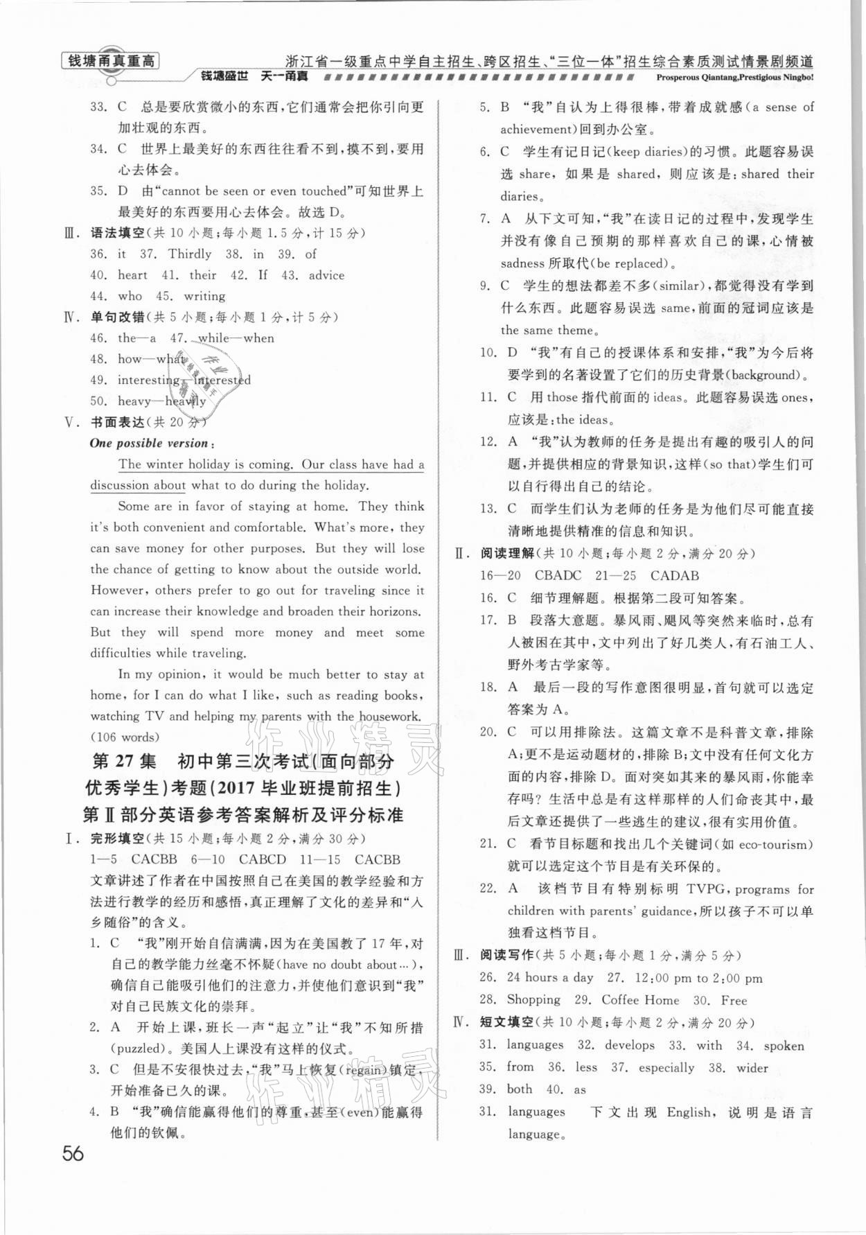注:目前有些书本章节名称可能整理的还不是很完善,但都是按照顺序排列的,请同学们按照顺序仔细查找。练习册 2021年钱塘甬真重高英语中考 答案主要是用来给同学们做完题方便对答案用的,请勿直接抄袭。