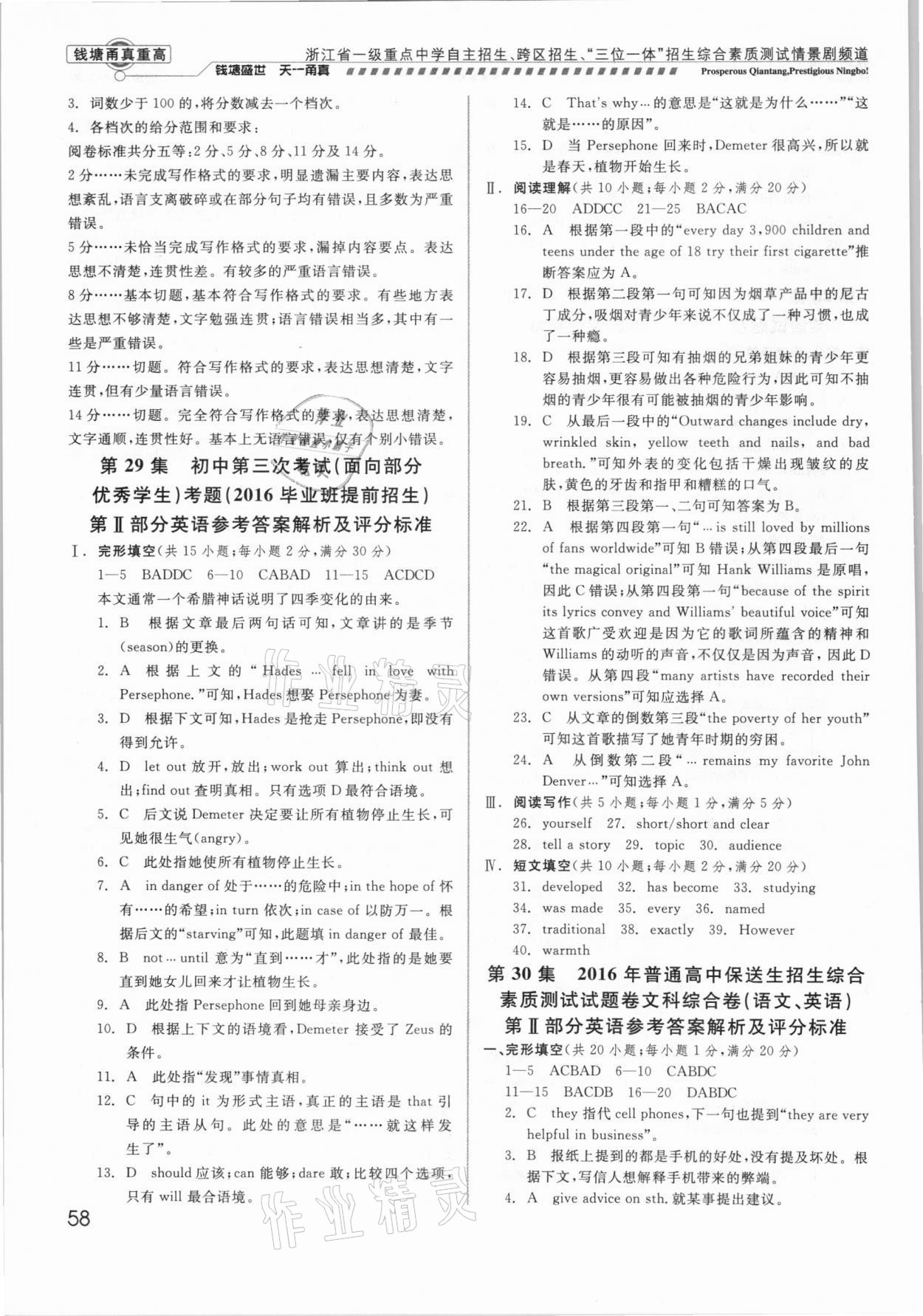 注:目前有些书本章节名称可能整理的还不是很完善,但都是按照顺序排列的,请同学们按照顺序仔细查找。练习册 2021年钱塘甬真重高英语中考 答案主要是用来给同学们做完题方便对答案用的,请勿直接抄袭。